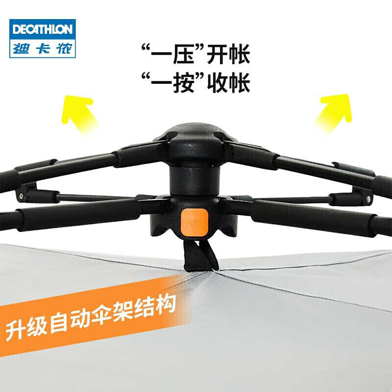 迪卡侬 8641950 野营帐篷,双门双窗:透气纱网防蚊虫,空气对流顺畅,保护隐私:门窗均搭配印花内帘,提供完善隐私保护,可抗4级风,安全牢固,不用担心帐篷稳定性问题,升级加宽外袋配合插扣设计收纳不受拉链束缚,收纳后体积小,女生也可轻松背负;面料厚实耐磨,使用寿命长。