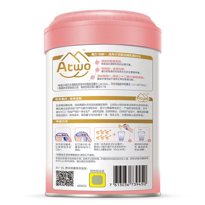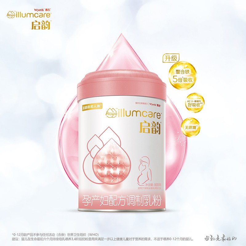 Wyeth 惠氏 illumacare 启赋 启韵 孕产妇配方奶粉 800g启韵亲和人体,有助孕妇的营养储备,为产后哺乳做好营养准备,为母乳喂养提供营养支持,帮助宝宝健康成长。专利甘氨酸亚铁,提高吸收率,更亲和人体。