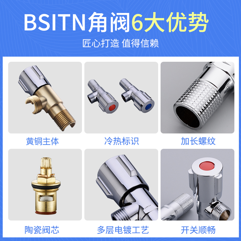 当前的位置: 首页 > 今日值得买 > BSITN 波士顿卫浴 5个装 铜角阀 冷热水快开加厚三角阀4分八字阀 通用止水阀 B501-1