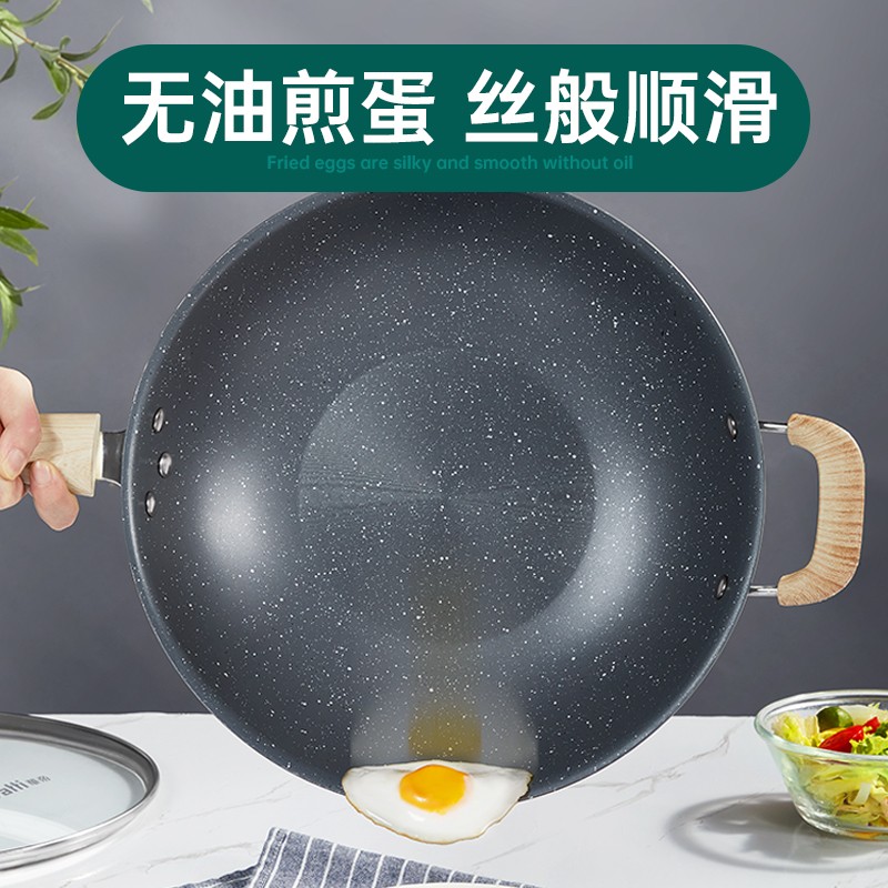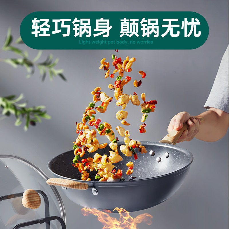 VATTI 华帝 大麦系列 C3417 不粘炒锅 34cm,厚底薄壁锅身设计,均匀传导热量,减少油烟产生;麦饭石涂层,不含PFOA;锅面螺旋细纹,食材更不粘;加固设计不凸底,不易变形更耐用;三层复合锅底,炉灶通用。