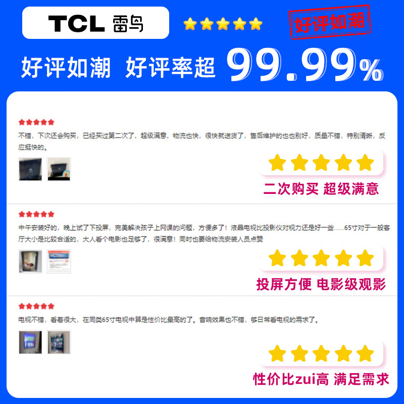 TCL 65S265C 液晶电视 65英寸。支持HDR10,双频WiFi 支持2.4G&5G,2个HDMI2.0接口数,2个USB2.0接口数,杜比+DTS音质。10.7亿色的细腻表达 拥有惊人的色彩表现能力,近乎真实的颜色渐变过渡, 拒绝“断层式”的不自然呈现。支持HDR10高动态范围解码,深邃暗处与耀眼高光,,所有画面细节一网打尽。