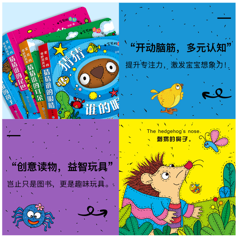0-3岁宝宝正处于“细小事物敏感期”,宝宝们都特别喜欢“戳一戳”、“扣一扣”各类玩具,在此期间,非常有需要为孩子准备一套开发智力的洞洞书。这套丛书设计了不同的洞洞,在锻炼宝宝小手指的同时,大大提高宝宝的认知能力和阅读兴趣,满足宝宝的好奇心。