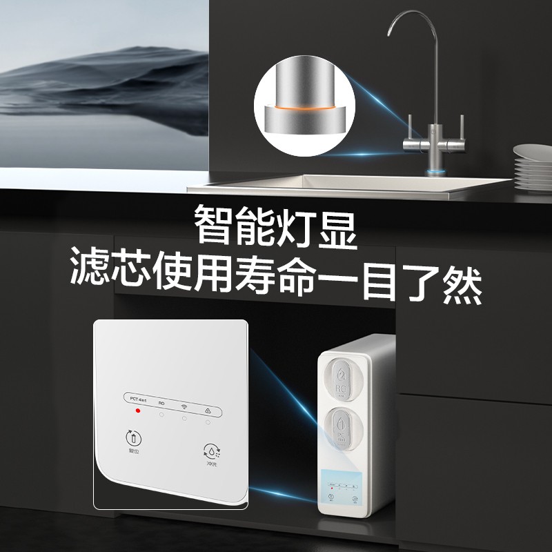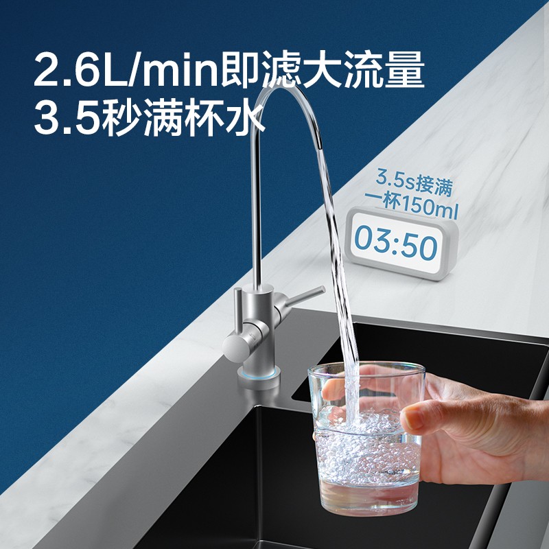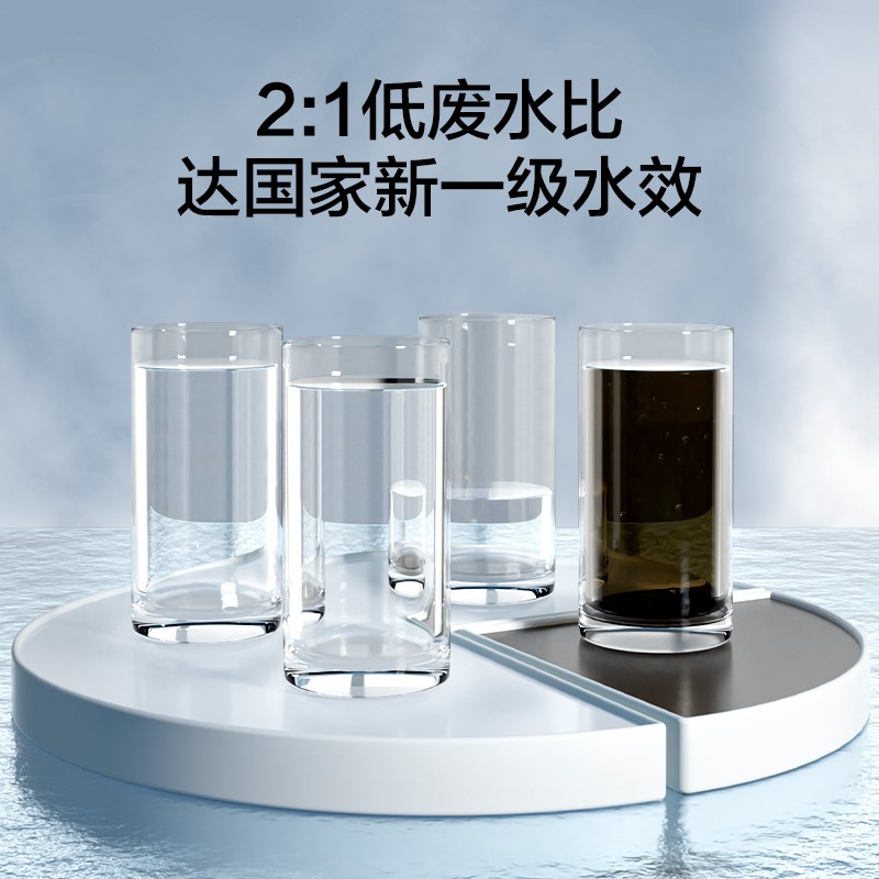 京造JZ-JS1000G厨下净水器,1000G通量,每分钟出水可达2.6L。使用四合一复合滤芯和RO反渗透滤芯。RO滤膜可使用5年。四合一滤芯内置椰壳活性炭,高密度PP棉,高密度活性炭颗粒。有效吸附小杂质,有效去除余氯。采用无双酚A水路,确保家人饮水健康。国家一级水效,71%产水量。6000L纯水+6000L净水超大净水量,具有净水和纯水的双出水设计,水龙头带有指示灯,可提示滤芯寿命。