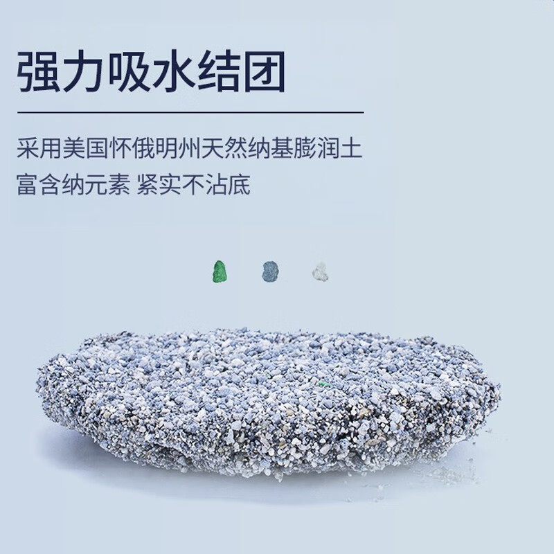 结团用量30ml水分消耗约107.3g猫砂,一包大概能用50天,结团强度居中,铲屎时不易铲碎,5cm厚猫砂基本没什么粘底情况。