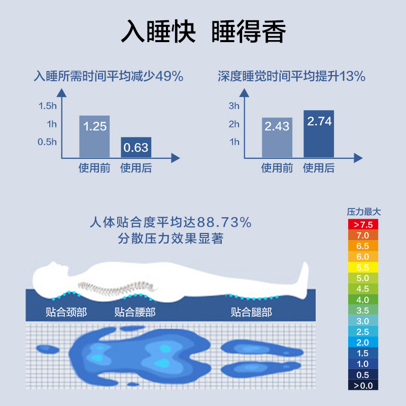 人体工学承托,动态睡姿辅助,提供更聪明的释压。