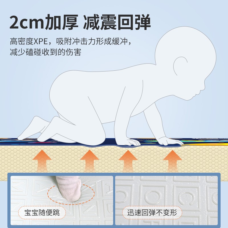 M-CASTLE 婴儿爬爬垫 流浪地球200*180*2cm(XPE垫),采用高密度XPE材质,吸附撞击力形成缓冲,宝宝摔倒也不疼,保证你也想上去踩一踩,加厚设计,为宝宝爬行量身定制。