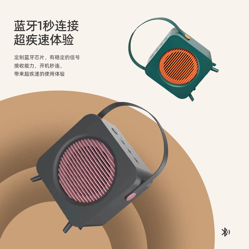 这款音箱支持360°环绕音。使用40mm独立低音大振膜,自成声场,让低音更有力量。使用蓝牙5.1连接,有效传输距离10米。出色材质工艺打造轻巧机身,一体式绳环设计,轻巧便携。内置1200mAh电池,续航约20小时。