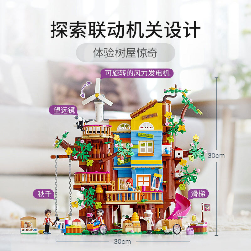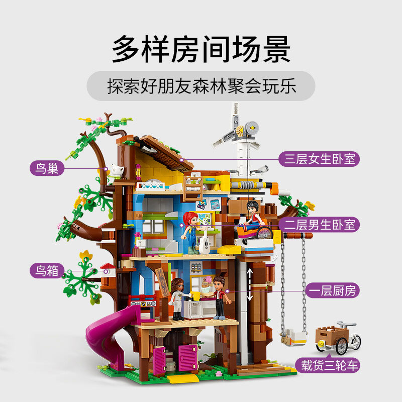 玩乐这款友谊树屋 (41703) 玩具,属于好朋友系列积木套组,首发于2022年,整个套组包含 1114 个积木颗粒。8 岁及以上的孩子可以同乐于助人的乐高好朋友角色们一起制作产品并出售,为慈善事业筹款。通过玩乐,他们会发现帮助他人的快乐。
