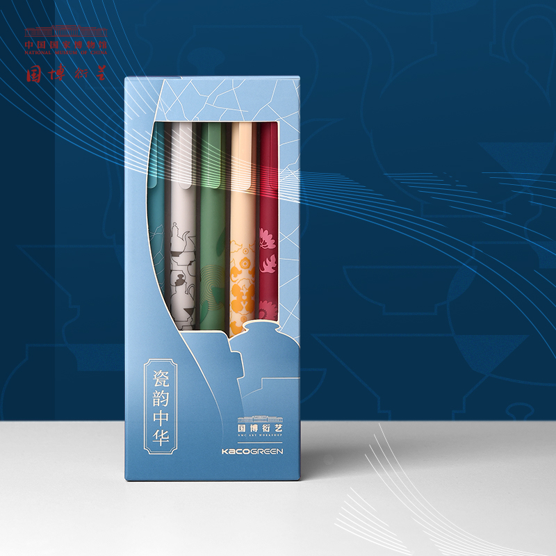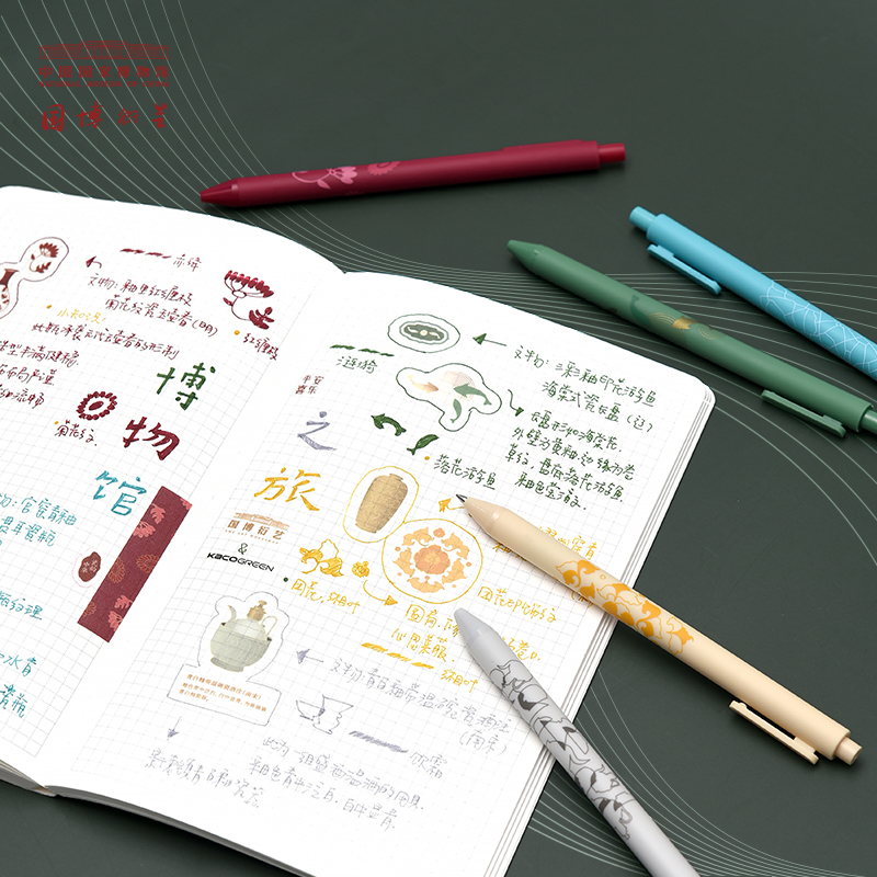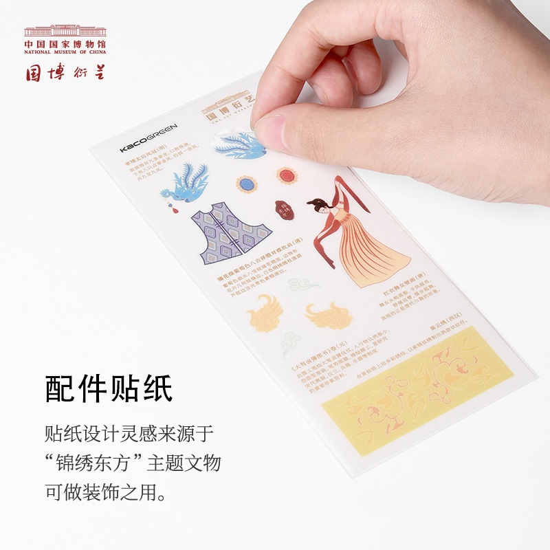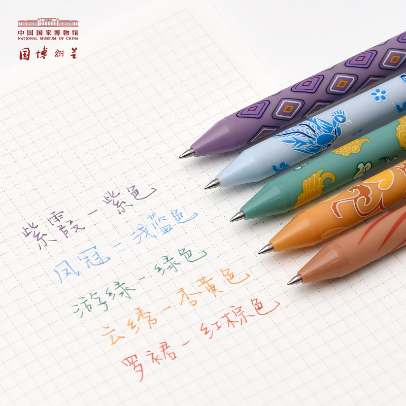东方色彩,国风新意。锦绣东方系列尽显国潮美学,唯美彩色笔芯,笔杆印花均来源于典藏珍品。如紫霞紫色,镶花绦葡萄色八吉祥缎对襟坎肩(清),葡萄色曲水八宝纹暗花缎面,边饰,有花卉几何纹绦边、白色缎绣缠枝,莲葫芦纹边及元青色素缎滚边。