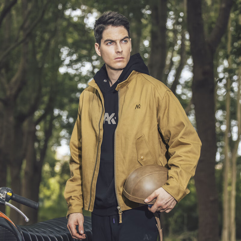 此款改进版哈灵顿夹克集面料版型款型为一体之作,展现其简约的穿着状态,这款哈灵顿将罗纹都取消了,改为克夫袖口和橡筋下摆收口,从视觉上一概常态,领子由双扣减为单四合扣,包括袋盖,略微参入机车元素,是春季骑车开车的理想外套,版型略宽松,保持运动量,易搭易穿不显老气,粗犷的棉粗斜纹减弱了原本商务感的夹克,符合休闲的味道,并且将版型的挺括感支撑起来。