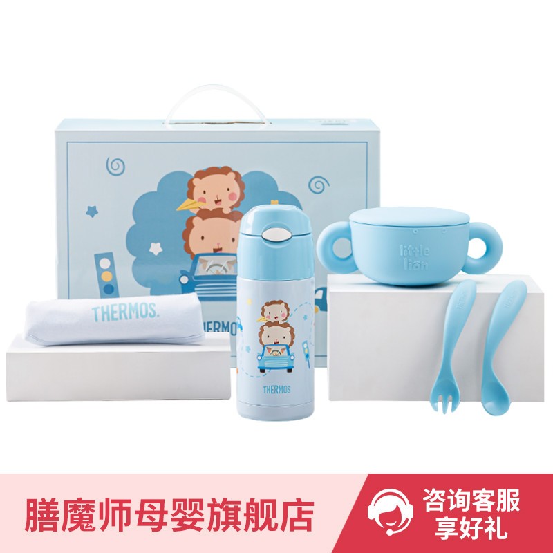 THERMOS 膳魔师这款儿童保温杯餐具礼盒,包含保温杯、餐具、围兜。小巧便携双效保温杯,萌趣高颜值,让宝宝爱上喝水。不锈钢双层辅食碗,分离式设计360°清洗无死角。餐具齐全,宝宝用餐叉勺随意切换。可爱用餐围兜,宝宝用餐小帮手,不再担心弄脏衣物。