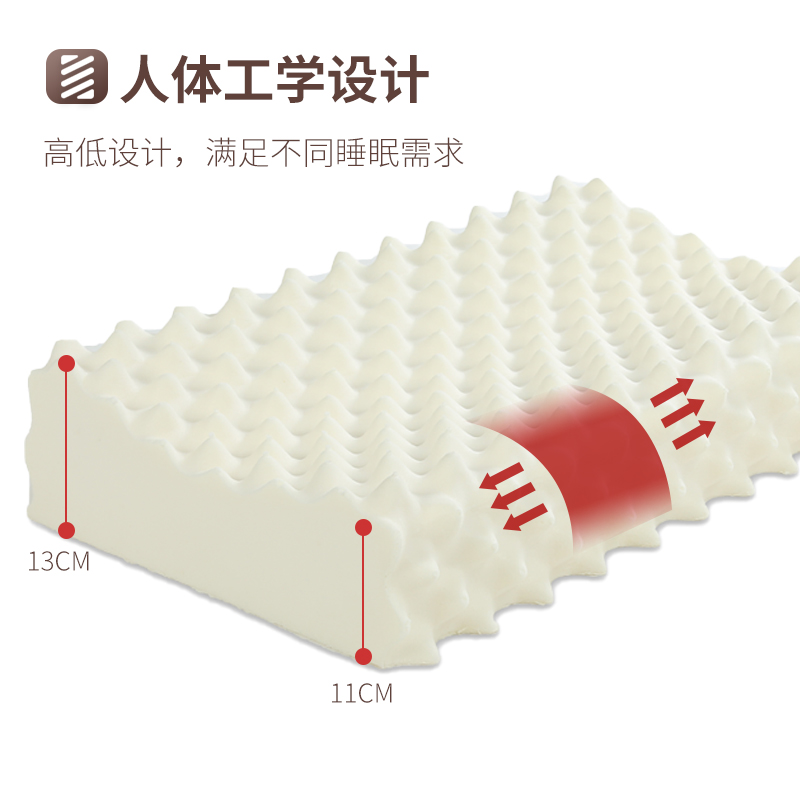 本款乳胶枕选用泰国天然乳胶制造而成,乳胶含量高达90%,表面采用蜂窝透气结构设计,加强了内部循环避免闷热,工学波浪护颈设计,紧致贴合人体颈椎,充分释压更舒适~