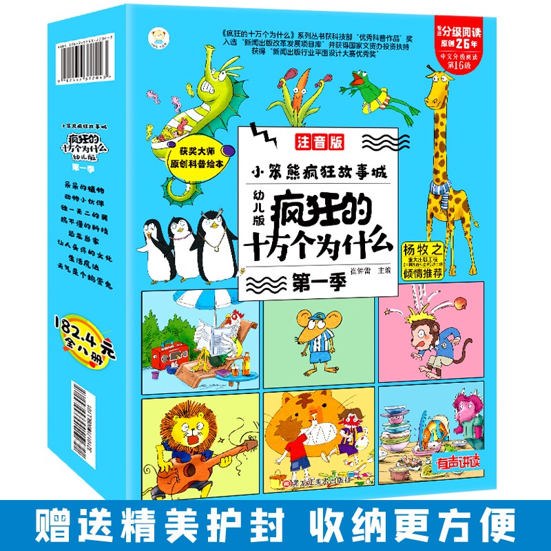这是一套获奖大师原创科普绘本,用轻松幽默的故事讲述科普知识。专门针对3-6岁孩子策划,全套8册,分为8大主题,由4位出版界大咖花费3年时间倾力打造,内容涉及动物、植物、恐龙、天气、人体、生活、科技、文化八大热点领域。