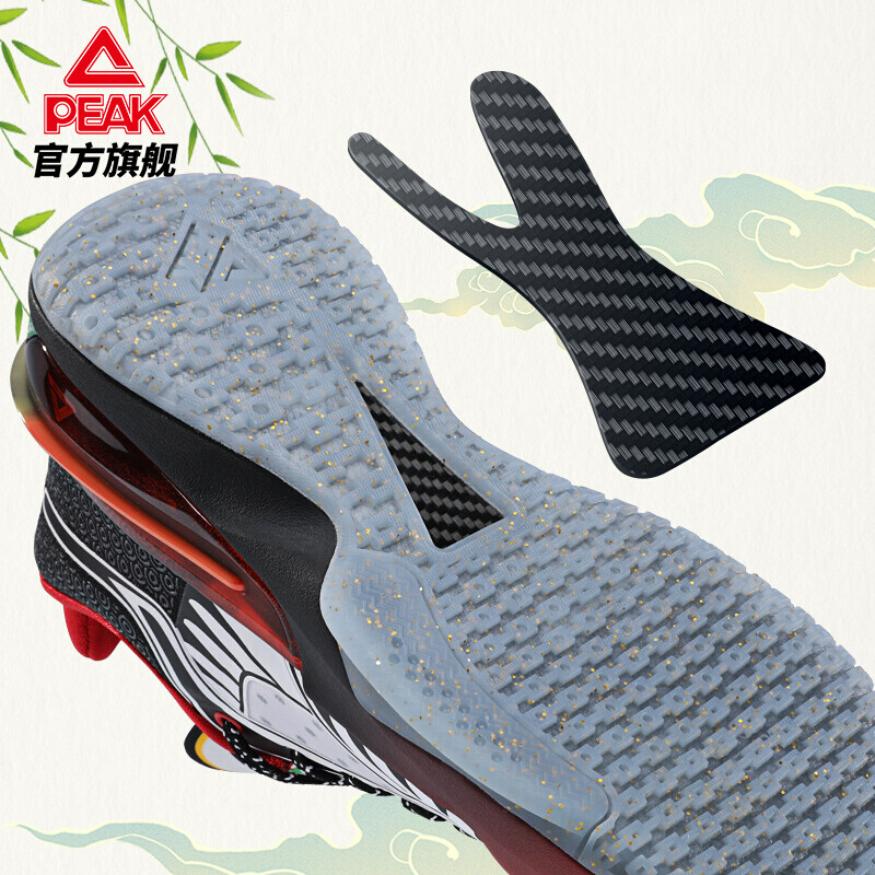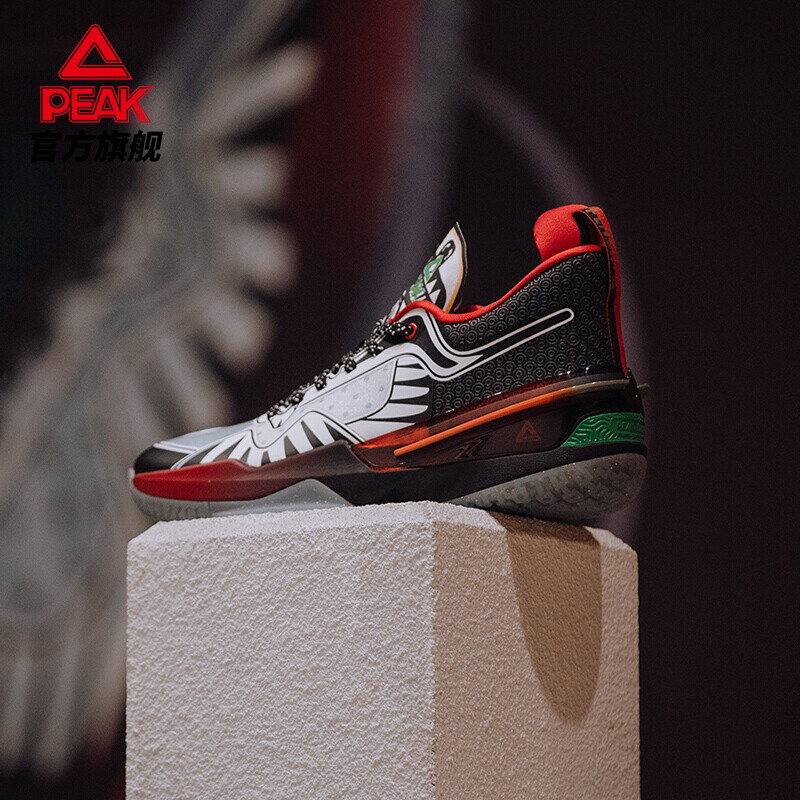 PEAK 匹克 态极 闪现3代 风筝 E14903A 男子篮球鞋,鞋面两侧支撑融入“沙燕’风筝的翅膀与燕尾羽毛形状,轻盈如燕,如两翼稳定支撑。鞋舌印有风筝圏案,结合后跟祥云元素,点名主題身价,映射凡筝飞翔于祥瑞之上。闪现3代全新鞋楦,告别“肥大、臃肿”,轮廓精致千练紧致贴合包裹,场上场下漂亮过人。创新采用一模双密”注入式中底,前掌红色区域呼应魔弹急速启动,逐渐过渡后掌轻量化态极缓震。全新改良中底Y字形碳板,轻质、耐用、科学,有效过渡前后掌受力,保证后跟落地稳定性。轻量化鞋身处理+中底“一模双密"缓震科技,高性能网布配合PP膜设计,轻质耐久,兼顾透气支撑。