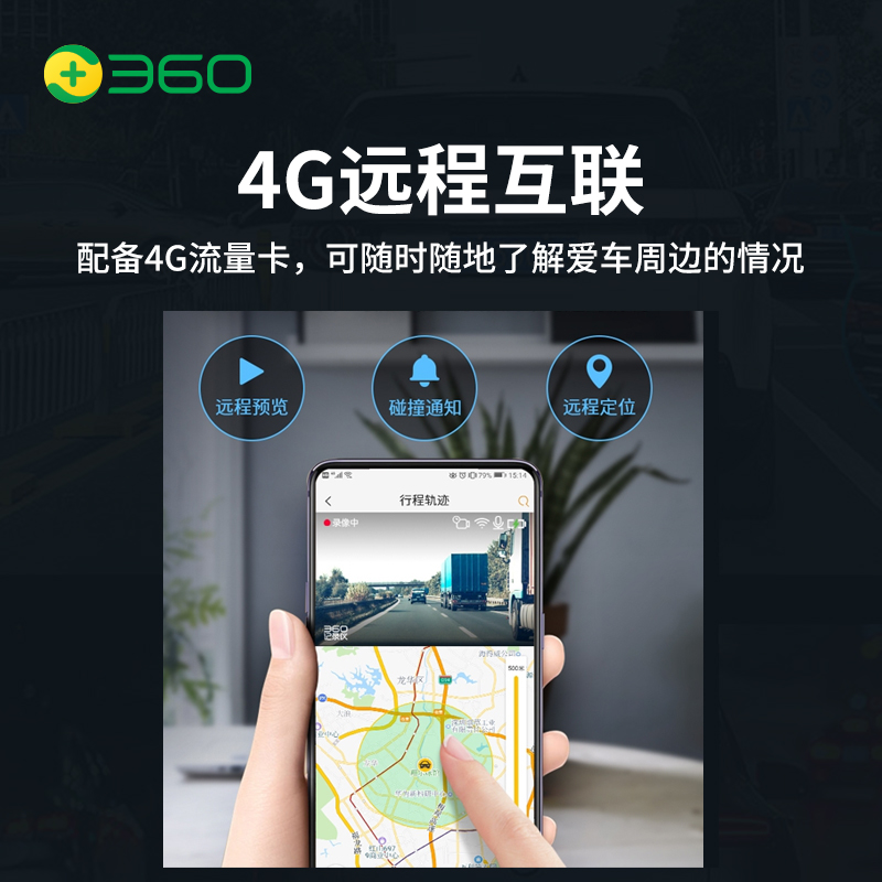 配置联通4G流量卡,每月赠送百兆流量,可远程查看车前画面/远程查看本地相册/车辆远程定位等功能,让每位车主都能随时随地了解爱车的周边情况,通过360行车助手APP还可建立或加入车主群聊,进入群聊的用户可通过手机或记录仪进行实时对讲。