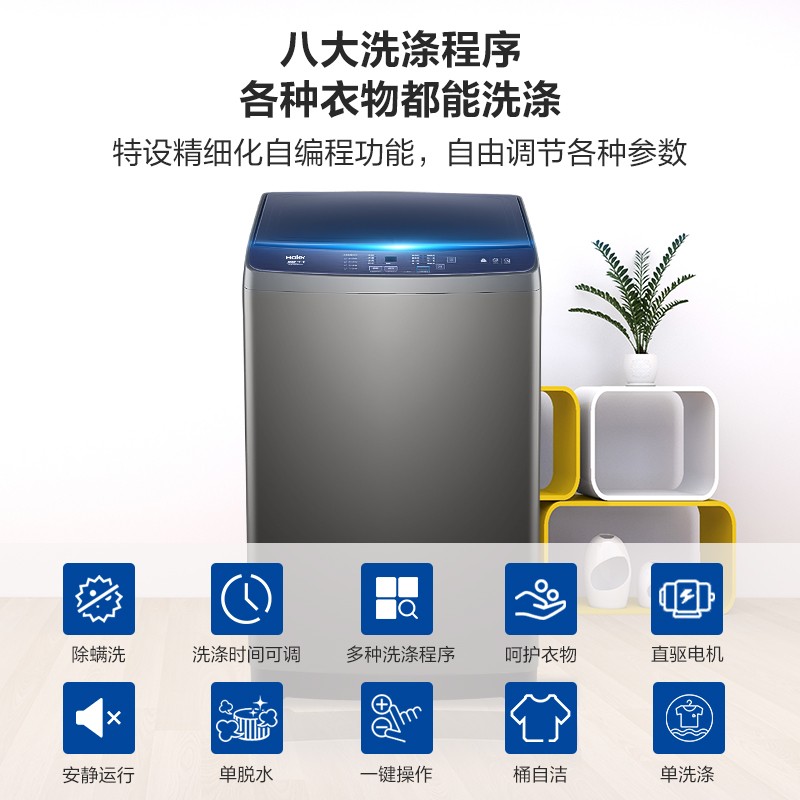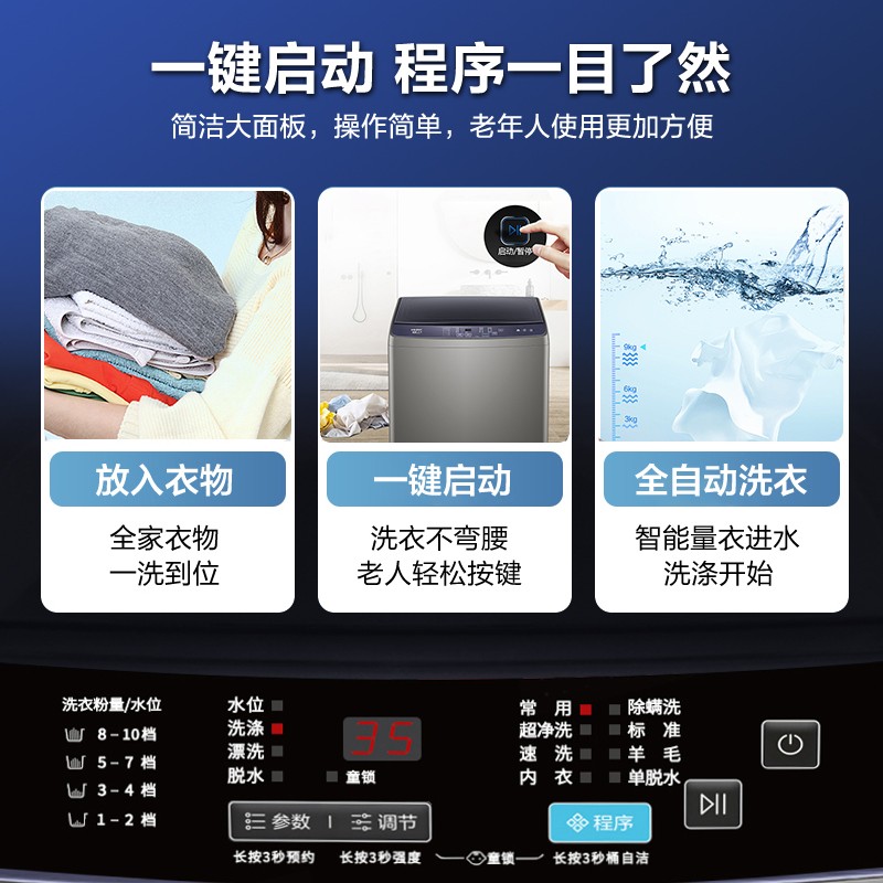 海尔10公斤波轮洗衣机XQB100-BZ206,拥有童锁,大容量, 智能预约, 水电分离等多种优点 1.海量空间:升级10kg海容量洗涤,现代大家庭必备,满足全家洗涤需求,让家务变得更轻松。 2.动力十足,大件轻松洗脱:好电机就像好心脏,变频电机为洗衣提供强劲精准的动力输出,大件家纺、厚重衣物也能轻松洗净、甩干。 3.新匀洗波轮,洗衣更护衣:波轮转动产生蝶形水流,承托翻转衣物,减少与波轮的摩擦,轻柔洗护。 4.智能预约,合理避开水电高峰:1-24h智能预约洗,自由设定洗衣完成时间,错开用水用电高峰期,抽打细算为你而省。 5.一键操作洗衣,不再难倒父母:为年长父母专属设计,删繁就简,开机后只需按下启动键,即可开始洗衣。