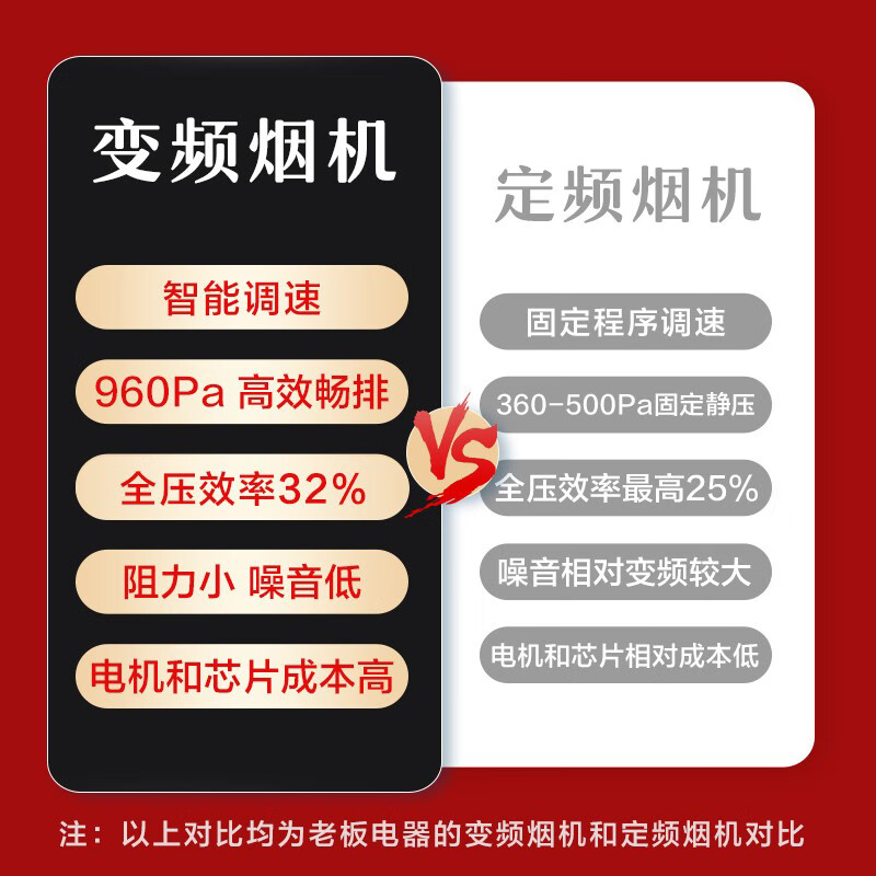 老板 双腔系列 CXW-260-60D1S 吸油烟机搭载BLDC变频电机,高速运转不衰减寿命长,风量可达22m3/min,最大静压可达960Pa,能够根据公共烟道压力自动调整转速,做饭高峰期排烟无压力。双腔设计形成一腔对一灶的精准定位,油烟升腾走直线效率更高。沉吸式造型有效增加负压区面积,并且离烟点更近,减少油烟逃散,20°倾角方便收集油污,清理更方便。多维降噪技术,噪音低至43dB,最强档也仅以后53dB。挥手指控2.0,实现自动开机,自动调档,避免面板沾满油污。