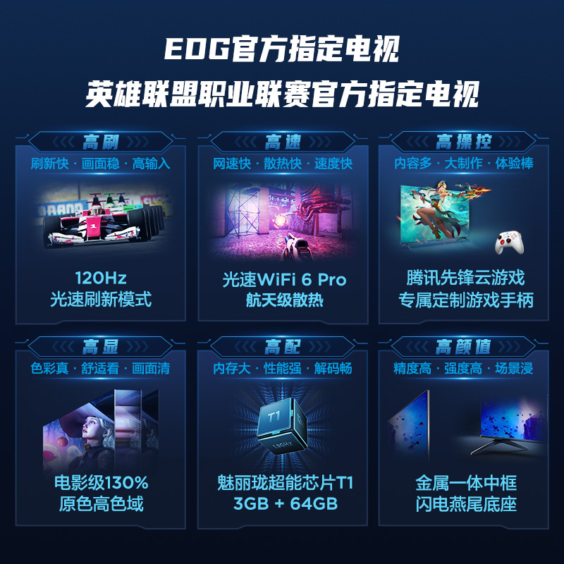 TCL 65V8E Max 液晶电视 65英寸,与京东联合定制的游戏电视,120Hz疾速刷新模式,配置120HZ MEMC运动补偿,确保画面清晰不拖影,HDMI2.1接口、VRR可变刷新率、ALLM自动低延迟,适配新世代游戏主机。WIFI 6 Pro相比普通WiFi,具备更快传输速度、更强信号、更低延迟的优势,配合腾讯先锋云游戏和定制无线游戏手柄,无需下载就能畅玩热门游戏。高色域屏幕,4K+HDR超高清画质,3GB+64GB超大内存,特丽珑超能芯片T1,conchs sound音响,语音遥控器,金属全面屏。