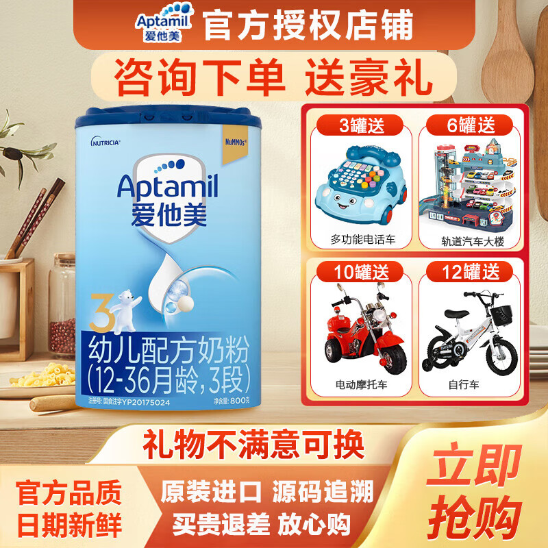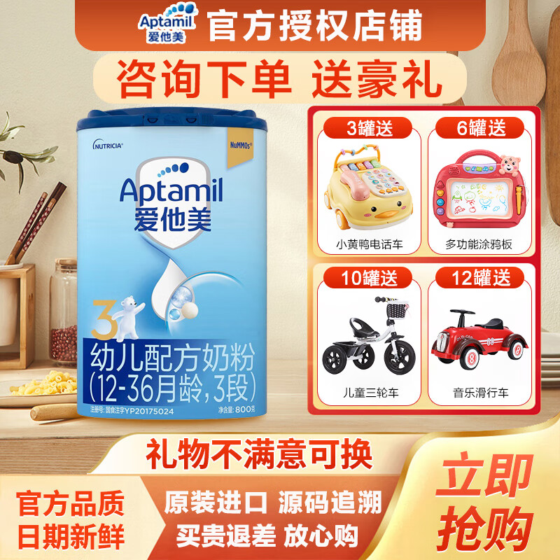 Aptamil爱他美奶粉是德国专业婴幼儿营养品开发销售公司美乐宝Milupa Group集团旗下品牌,为欧洲销量最好也是近两年海淘热门奶粉之一。这款Aptamil爱他美奶粉,特有的亲源配方,含有饱和脂肪酸,支持宝宝脑部及视力发育,低聚半乳糖、多聚果糖scGOS/icFOS搭配铁和锌,有助于增强宝宝的抵抗力,另含有维生素C和D促进宝宝对铁和钙的吸收,满足宝宝的营养需求。