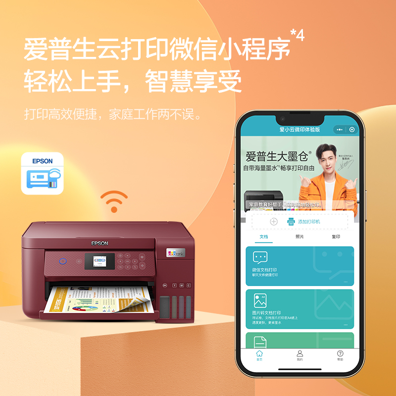 爱普生墨仓式彩色无线多功能一体机全新上市,新升级的L42系列更加智能,新一代Smart Panel APP 全线升级,智能安装,简易配网;也可适配爱普生微信小程序,畅享便捷智慧打印体验。采用创新 Heat-free喷墨打印技术,持久耐用。支持自动双面打印,无需手动翻面,可节省一半纸张。