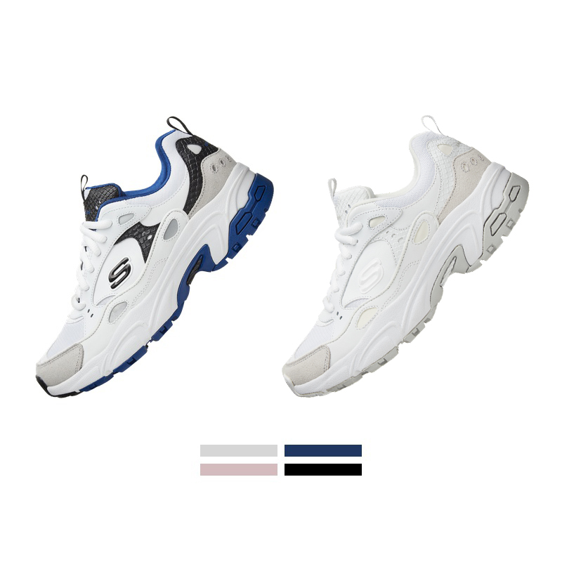 SKECHERS 斯凯奇 88888383 女款老爹鞋采用多种材质的繁复拼接,打造潮流个性气息,鞋口添加舒适棉填充,更贴合脚踝,后跟织带提拉设计,强化穿脱的灵活性,EVA组合橡胶材质,轻质吸震且防滑。