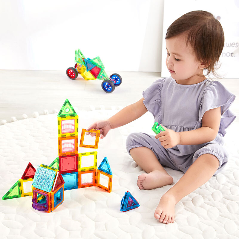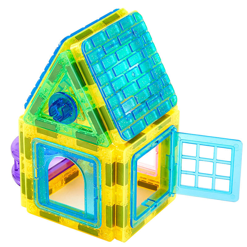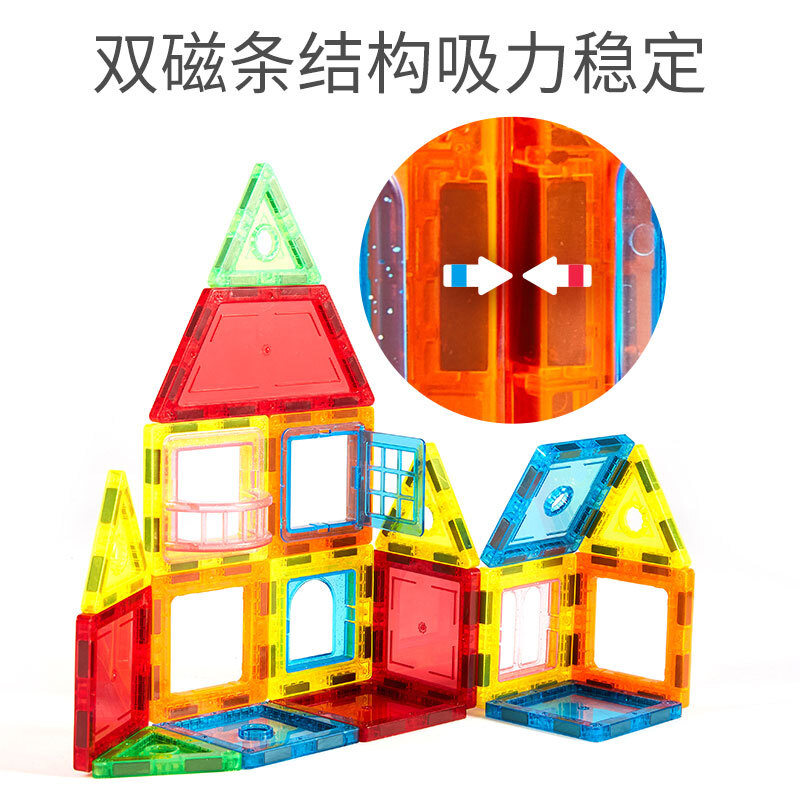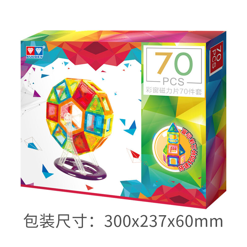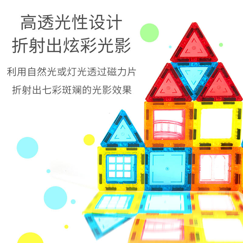 魔幻磁力对接片共70件套,色彩与形状的巧妙搭配,可拼搭成多种造型,发挥宝宝的无限想象力。无胶水粘合,进口ABS材质,拒绝甲醛,啃咬无忧,给宝宝天然的保护,五彩磁力片,高饱和度色彩,促进视觉发育,宝宝的早教好帮手。