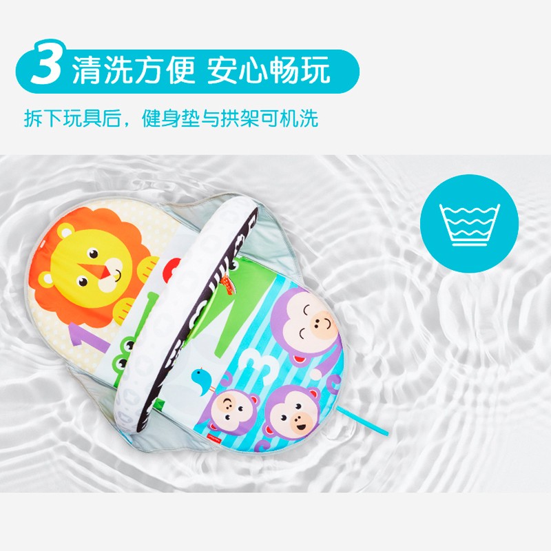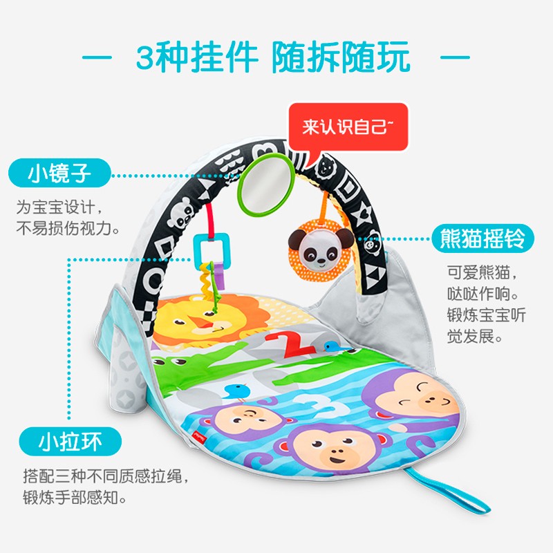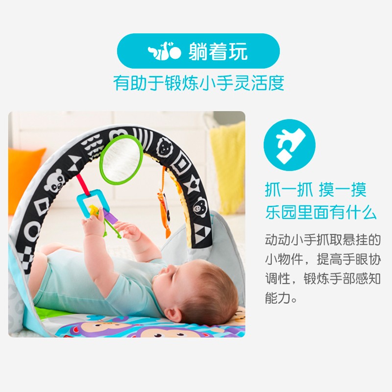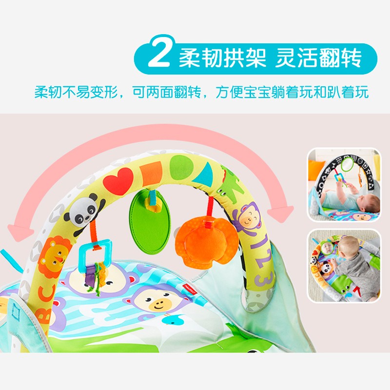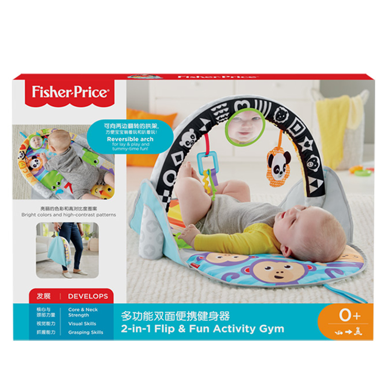 Fisher-Price 费雪 FXC14 多功能双面健身器可躺着玩,有助于锻炼小手灵活度,可趴着玩,锻炼小朋友抬头,认识颜色和图案。高度对比黑白图案,双色拱形架,一面黑白,另外一面色彩明艳,图案鲜明。