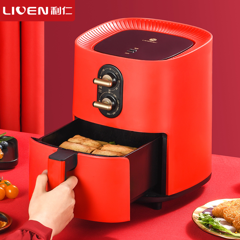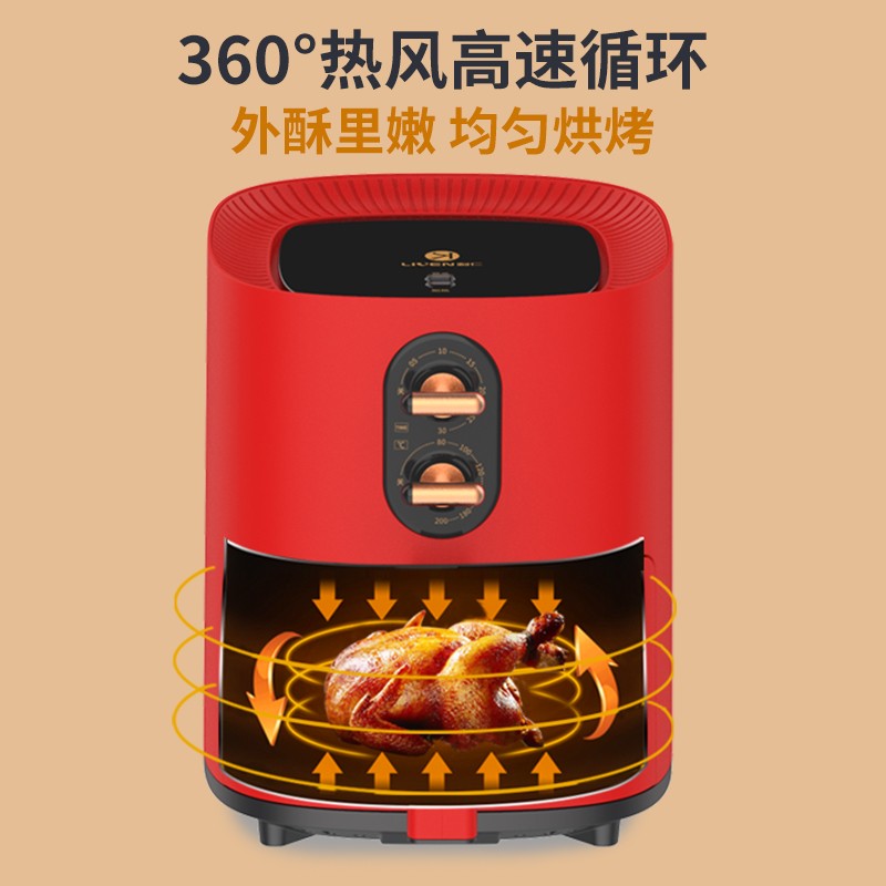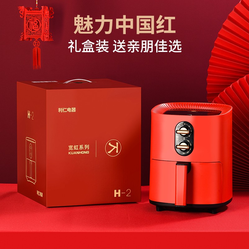 利仁 (Liven)这款型号为H-2的空气炸锅,属于最新上市的宽虹系列,产品采用了旋钮控温,操作简单,抽拉式烤蓝,断电记忆,不粘涂层,轻松清洗,定时速炸,无油炸、高温脱脂烤、立体加热不烤焦、空气旋涡式热循环技术, 稳定锅内外气压、温度差问题快速排出多余热量、水分,外脆里嫩,锁住食材的营养,真正的颜值担当。