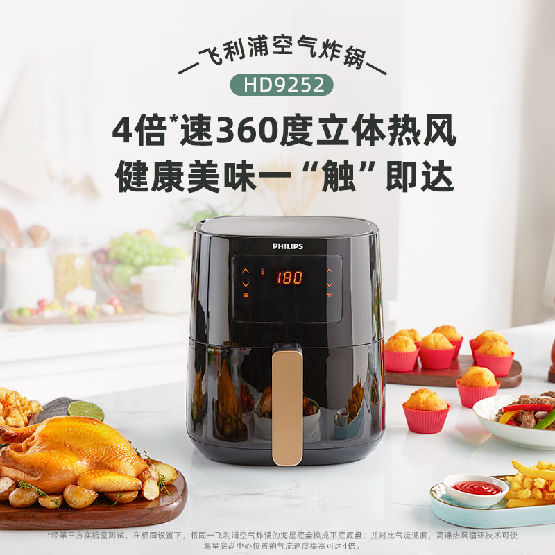 当前的位置: 首页 > 今日值得买 > 飞利浦(PHILIPS)空气炸锅 家用4L以上减少90%油脂 8大预设功能 智能触控操纵 不用翻面HD9252/81