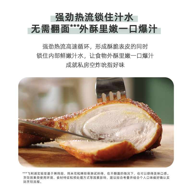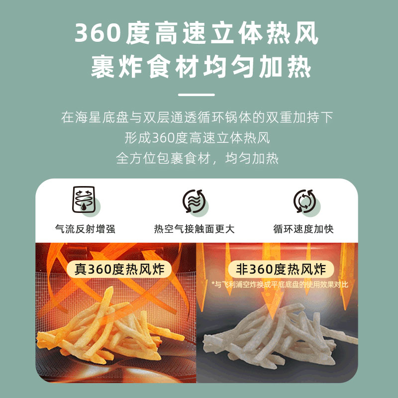 均匀加热无需翻面,不用担心食物外焦里生轻松收获美味,旋风海星底盘,更大反射弧面,更均匀的加热效果,让食物外脆里嫩,色泽澄亮。