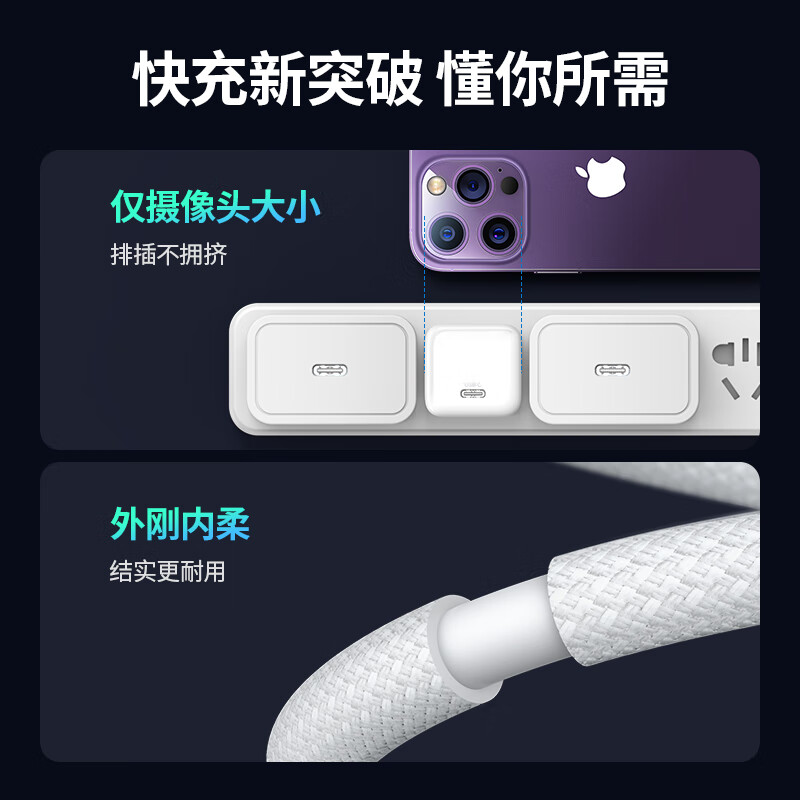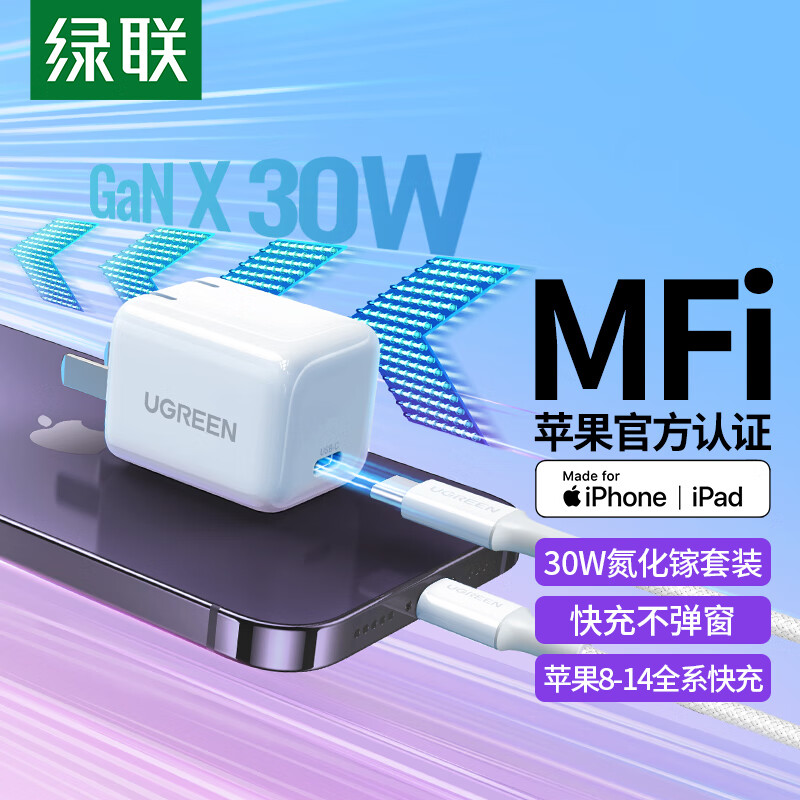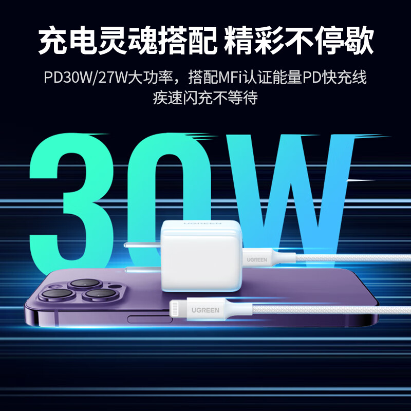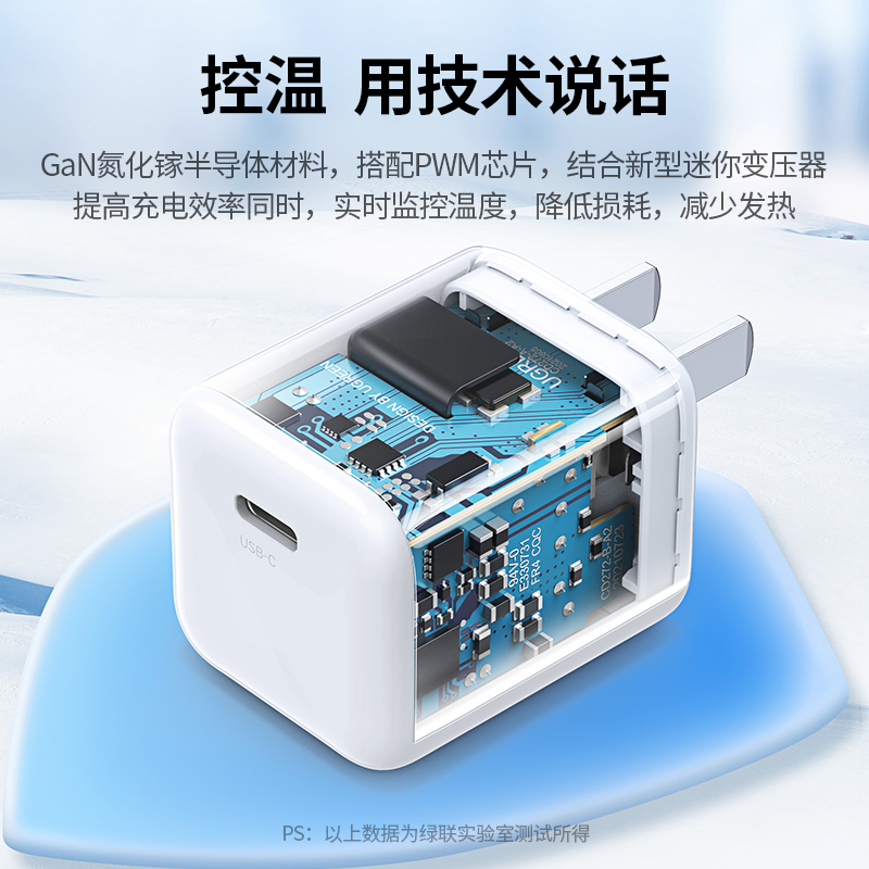 绿联 CD272 PD30W 氮化镓充电器,参与立体堆叠设计体积小巧仅3.2CM,可90°折叠插脚,最高输出30W大功率,手机、平板、笔记本皆可快充,兼容多快充协议。PD+MFi双安全的认证,与苹果原装相同标准,智能识别快充,安全不伤电池。该充电器得益于氮化镓新型半导体黑科技材料,提高充电效率的同时还能降低损耗、减少发热。八重保护为充电保驾护航。
