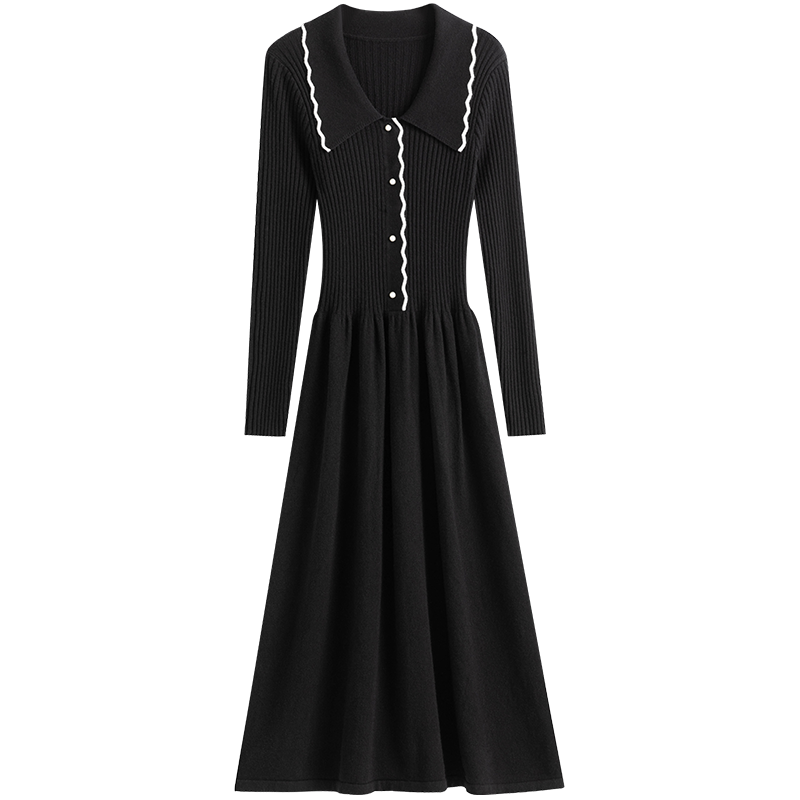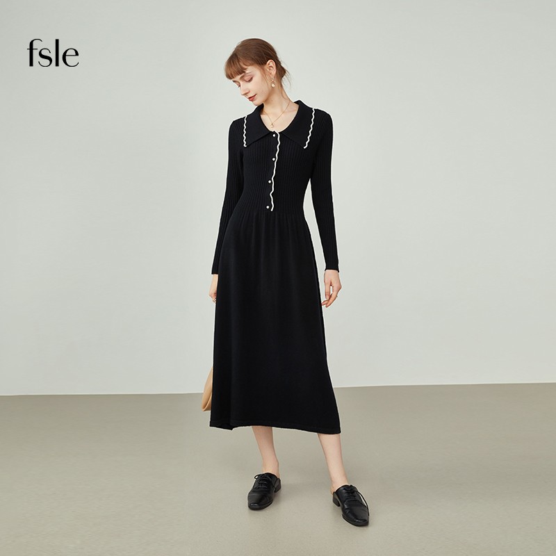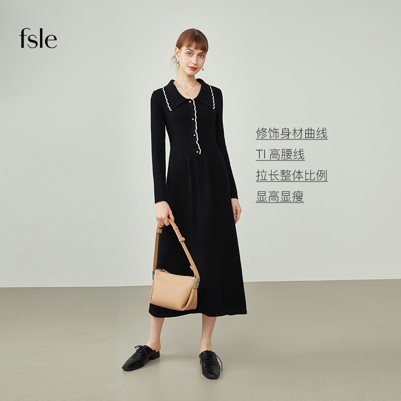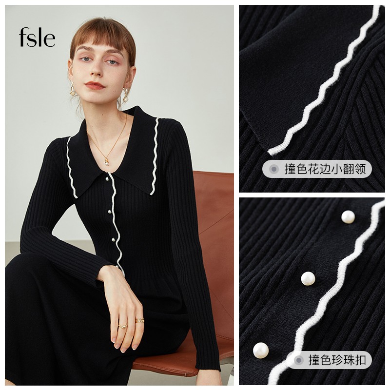 FANSILANEN 范思蓝恩 女士连衣裙 Z214261 复古撞色花边小翻领,微露锁骨更显优雅气质,流畅的撞色单排扣设计,点缀整体更具设计感,尽显女性魅力,黑与白的结合撞色,经典又清爽。