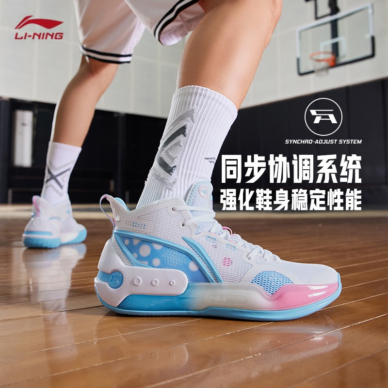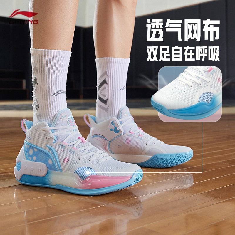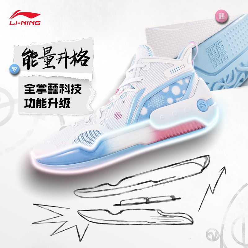 LI-NING 李宁 男款实战篮球鞋 ABAS053,采用了大面积的织面材质设计。另外李宁在球鞋的前掌部位加入了大量肉眼可见的透气孔设计,以此来提升这双球鞋整体的透气表现。鞋头部位一直延伸到后跟部位的TPU模块设计,这也是李宁驭帅系列的一个标志性设计,目的在于提升这双球鞋的支撑性能,避免球鞋在实战中发生侧翻的现象。鞋底采用了橡胶材质的外底辅以波浪状外底纹路设计,目的在于保证这双球鞋在实战中的防滑性能和抓地表现。中底部分,也得以搭载李宁目前最新的全掌填充䨻轻弹缓震科技。