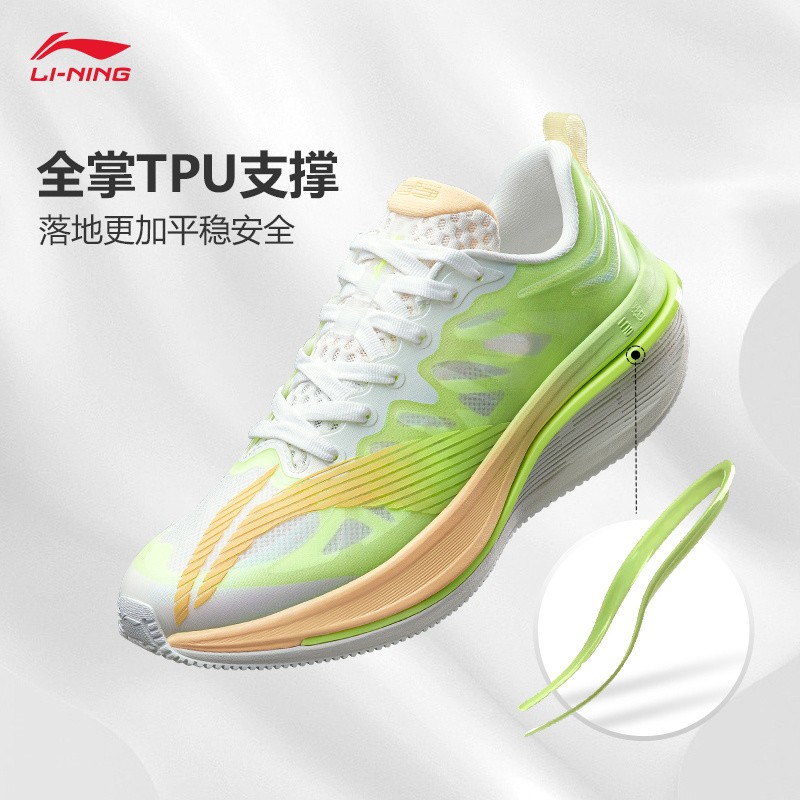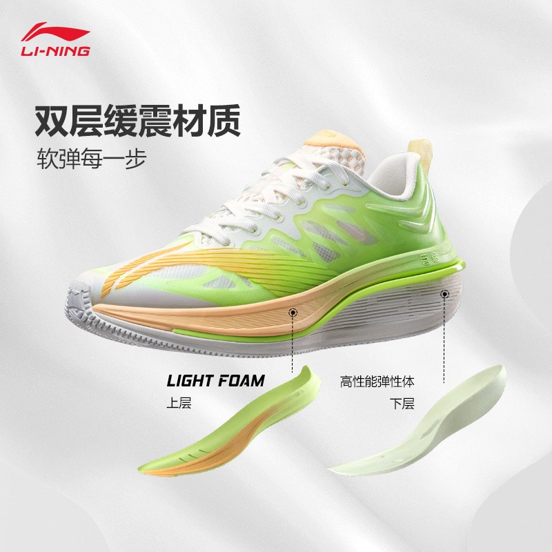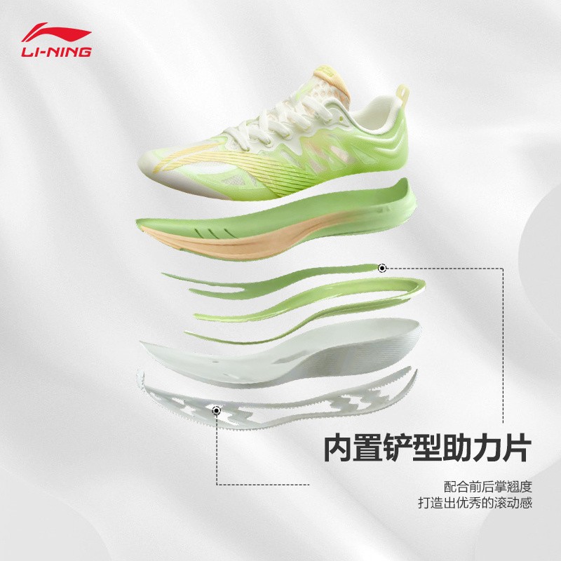 内置铲型助力片,打造强劲推进感,轻松驾驭短距离慢跑。滚动感加持,畅享迈步,精心调校的前后起翘弧度,过度更顺畅,打造流畅滚动的轻松脚感。外底橡胶贴合,结合特殊纹理设计,耐磨,防滑,强劲抓地力,适应各种路况,助力跑步体验。