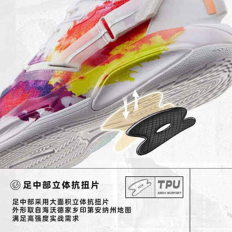 前掌搭载安踏氮科技中底材料,能量回归率高达82.6%,氮气比普通EVA材质重量减轻30%。中底搭载A-FLASHEDGE科技,根据篮球运动进行专项改进,更轻、更弹、更耐用。创新HARNESS锁定系统,以赛车安全带为设计灵感,增强鞋面包裹性。足中部立体抗扭片,满足高强度实战需求。鞋身点缀专为圣诞节配色设计的趣味细节,鞋后跟TPU设有圣诞树图案,极具趣味性。