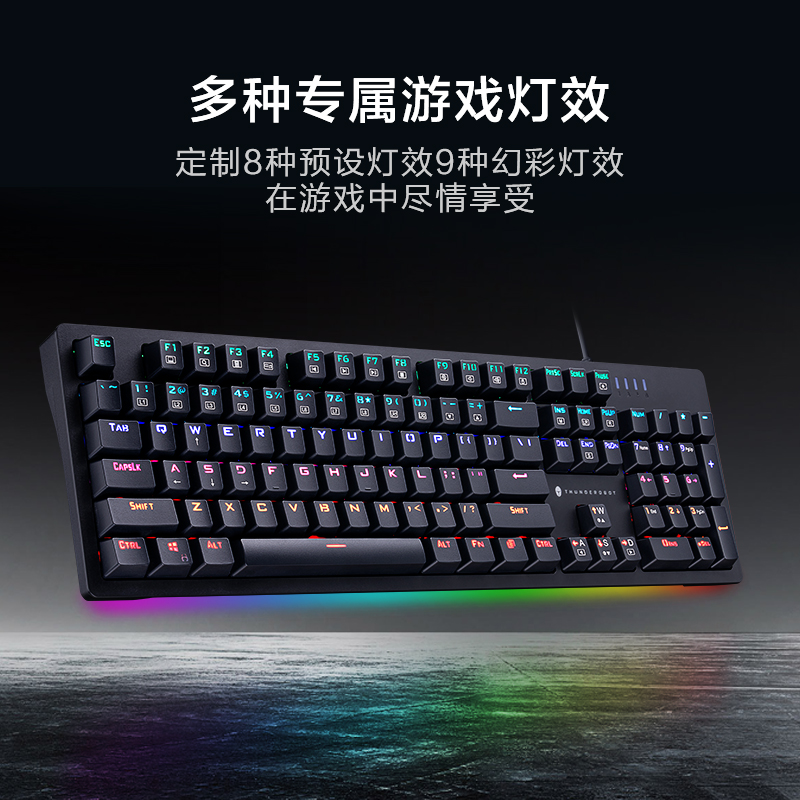 雷神KG3089C幻彩版 89键机械键盘,采用全新89键布局,保留了数字键区,保持小键盘方向键的独立性。采用L型炫酷RGB灯带,3组自定义背光模式+20种炫酷游戏灯效。KG3089C幻彩版采用注塑简约键帽,全键无冲。