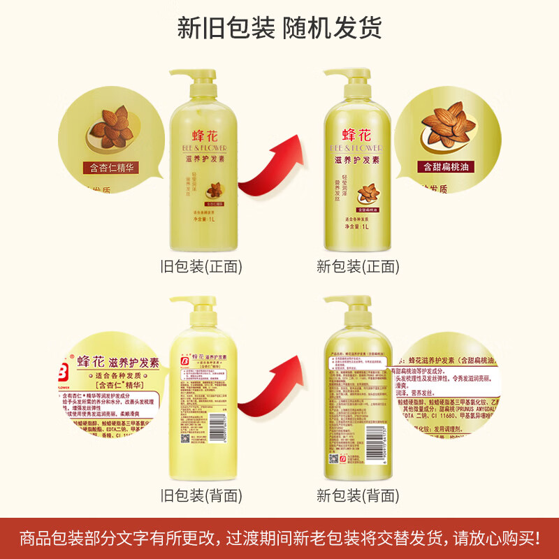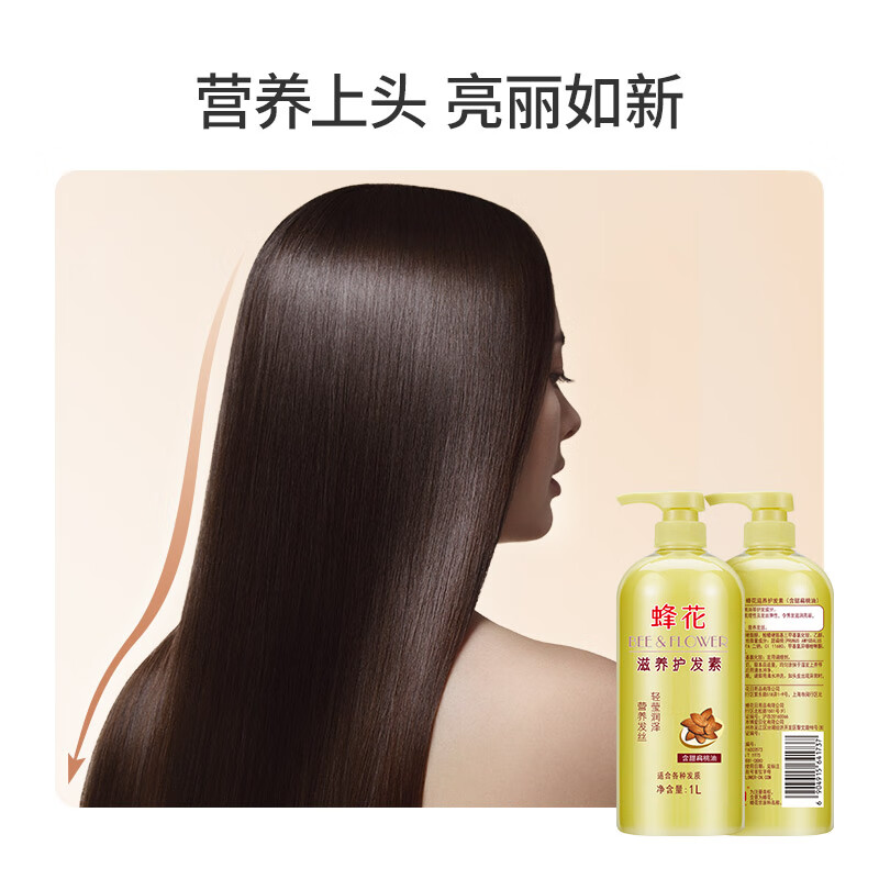 蜂花(BEE&FLOWER)推出的这款护发素,有两款可以选择:杏仁滋养护肤素和橄榄滋养护发素。杏仁滋养护发素添加杏仁精华、植物萃取精华等成分,可改善头发梳理性,增加发丝弹性,令秀发柔顺爽滑。橄榄滋养护发素成分中富含橄榄精华,为头发补充水分和养分,改善秀发毛躁、分叉等问题,增加发丝光泽度。可根据发质需求选择使用。