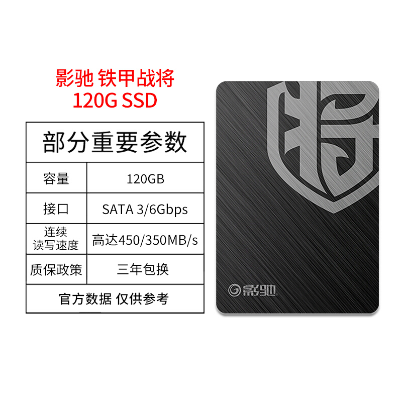 影驰 铁甲战将120G SSD固态硬盘采用了群联的PS3111-S11主控芯片,标准SATA 6.0GB/s接口。使用东芝 15nm TLC 闪存颗粒,是SSD中的高性价比的产品。连续读取速度为450MB/秒,连续写入速度为340MB/秒,支持Smart ECC智能纠错。外形轻薄,尺寸100x 69.85 x 7 mm。