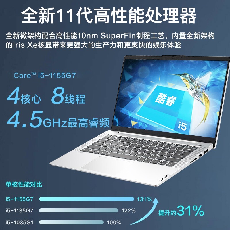 联想(Lenovo) 小新Air14全面屏超轻薄笔记本电脑大学生商务办公游戏设计手提本100%高色域 11代酷睿i5-1155G7 16G 512G固态 锐炬X显卡 Wifi6精装版含office银色