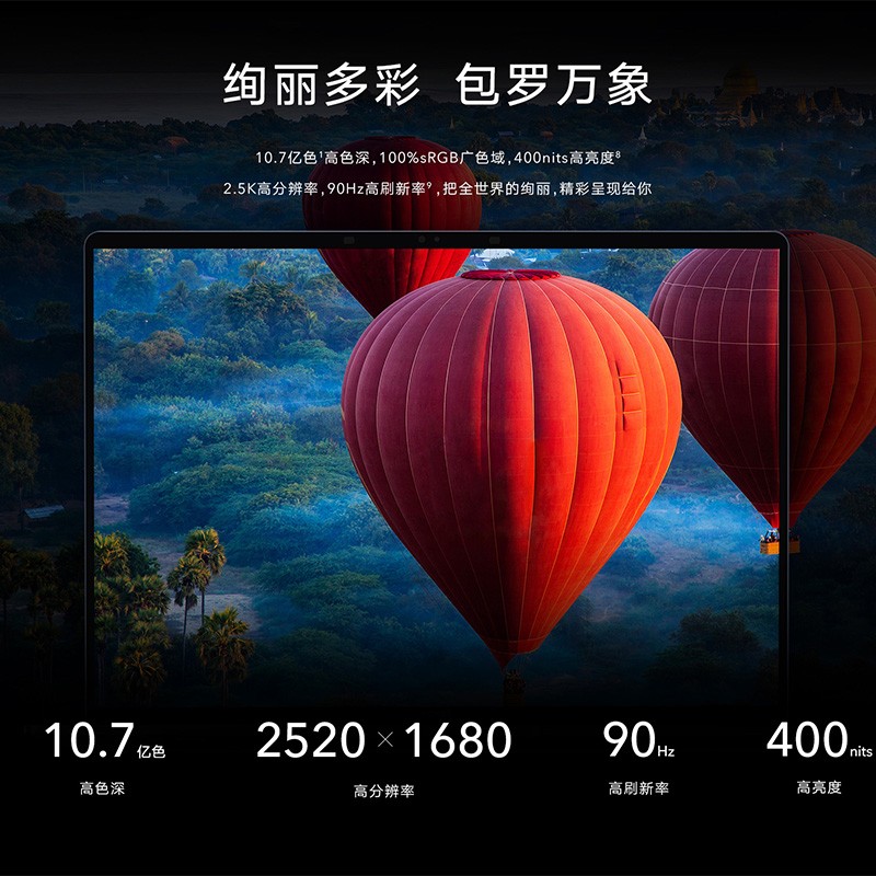 屏幕采用了2.5k高分辨率显示屏,10.7亿色高色深,100%sRGB广色域,400nits高亮度,90Hz刷新率,创新纯平边框设计,90.5%高屏占比,让灵感跟随指尖自由滑行,不受边界束缚。