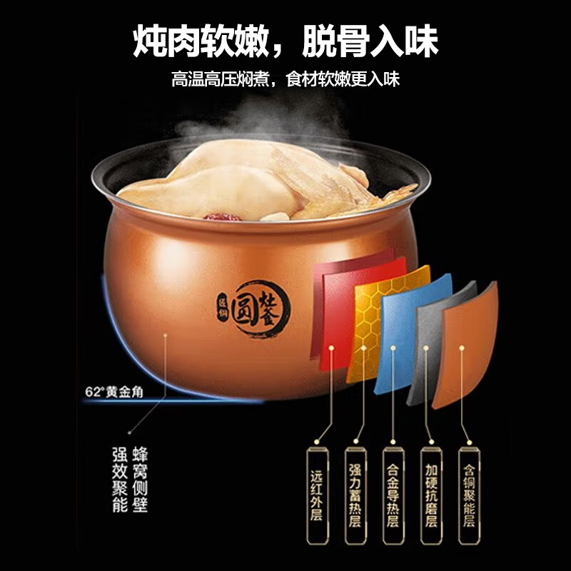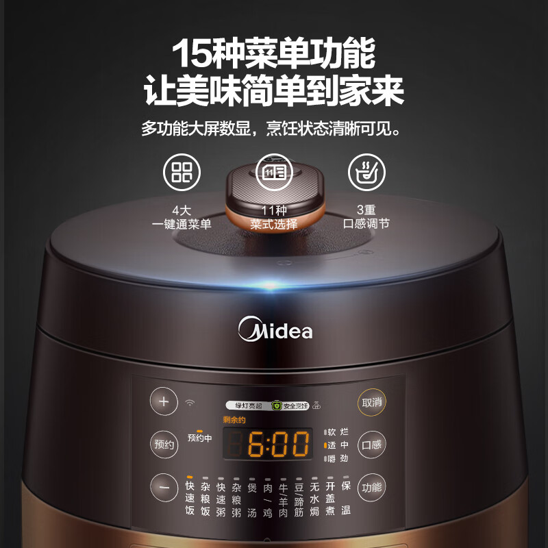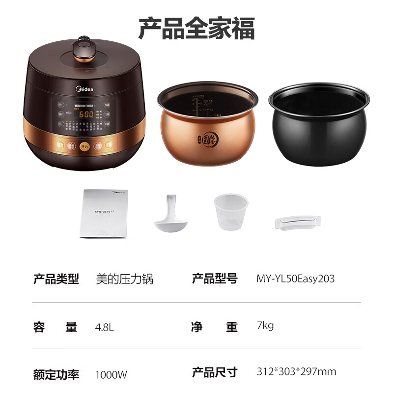 当前的位置: 首页 > 今日值得买 > 美的(Midea)智能电压力锅4.8L 家用多功能 不粘双圆灶釜 开盖收汁 一键排气 高压锅YL50Easy203(3-6人食用)
