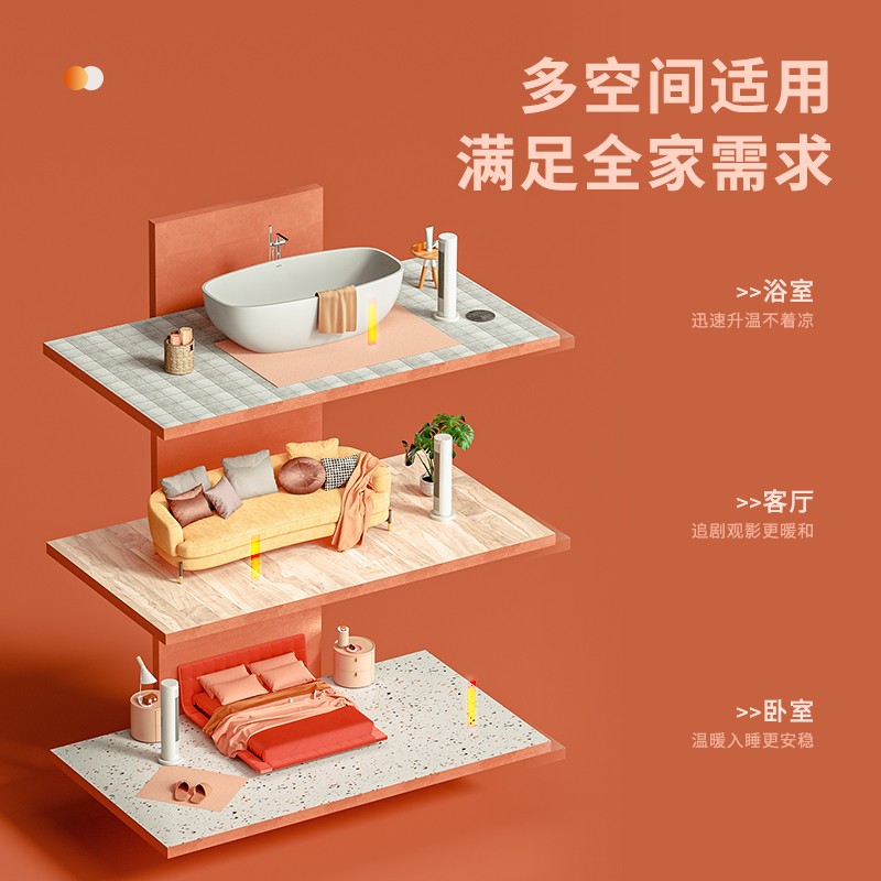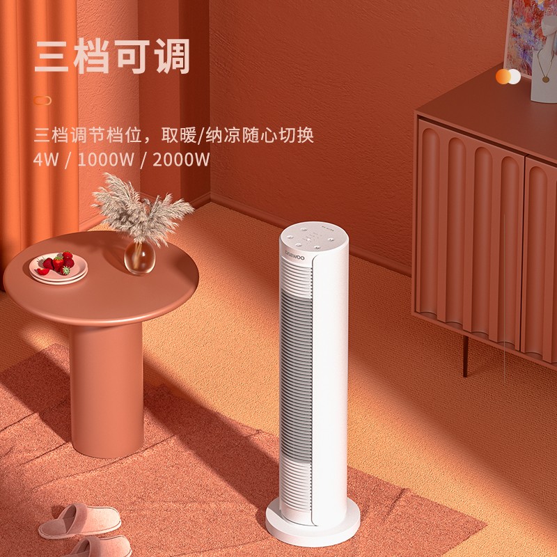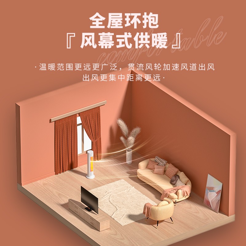 塔式外观设计 温暖不占宝贵空间。暖风自然风,三档可调,四季可用的精致好物。全屋环抱 风幕式供暖。2000W大功率,三秒速热快速取暖。PTC陶瓷发热体,助力取暖。创新温度设定模式 多档温度随意可选。三重安心保护 越温暖 越需要关怀。