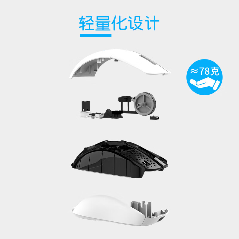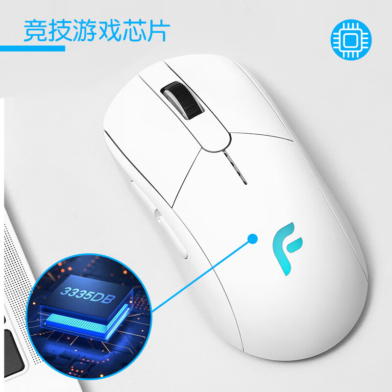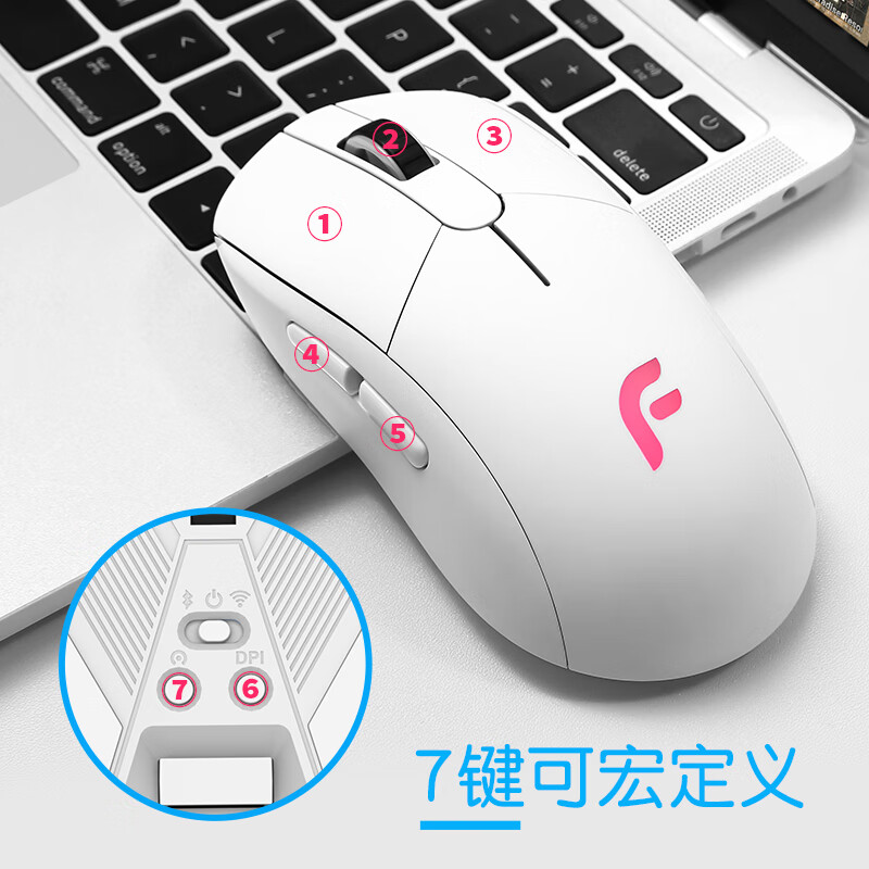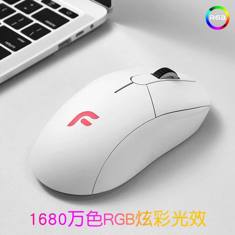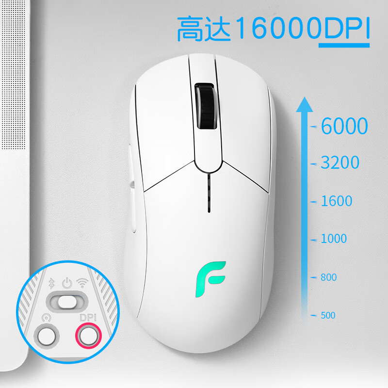 迪摩 FPW 无线鼠标人体工学设计,手感好,长时间操作不易疲劳,采用PMW-3335DB芯片传感技术,最高可达16000DPI。支持2.4Ghz、蓝牙5.0、Type-c有线三种连接方式,一键切换。能同时链接多台终端,一机多用,创新内骨架设计,外壳轻薄,鼠标净重仅78克。内置500mAh可循环充电锂电池,充满电只需2小时且一次充电在正常使用情况下可使用50小时。通过驱动可对7个按键进行自定义功能设置,1680万色RGB玄彩光效。