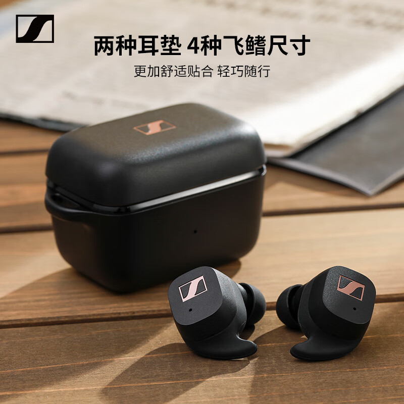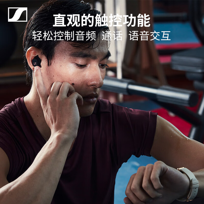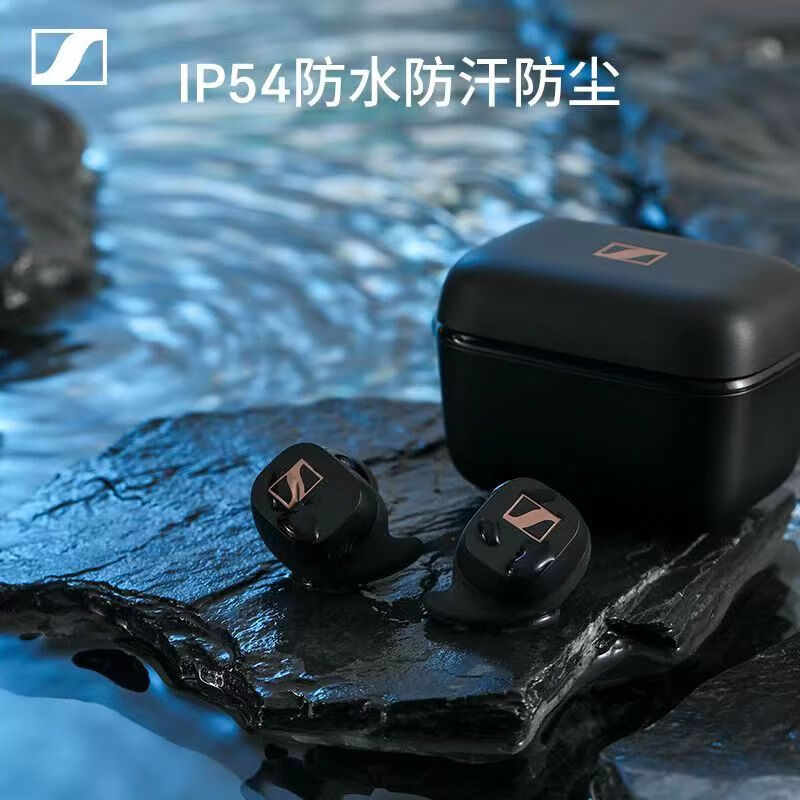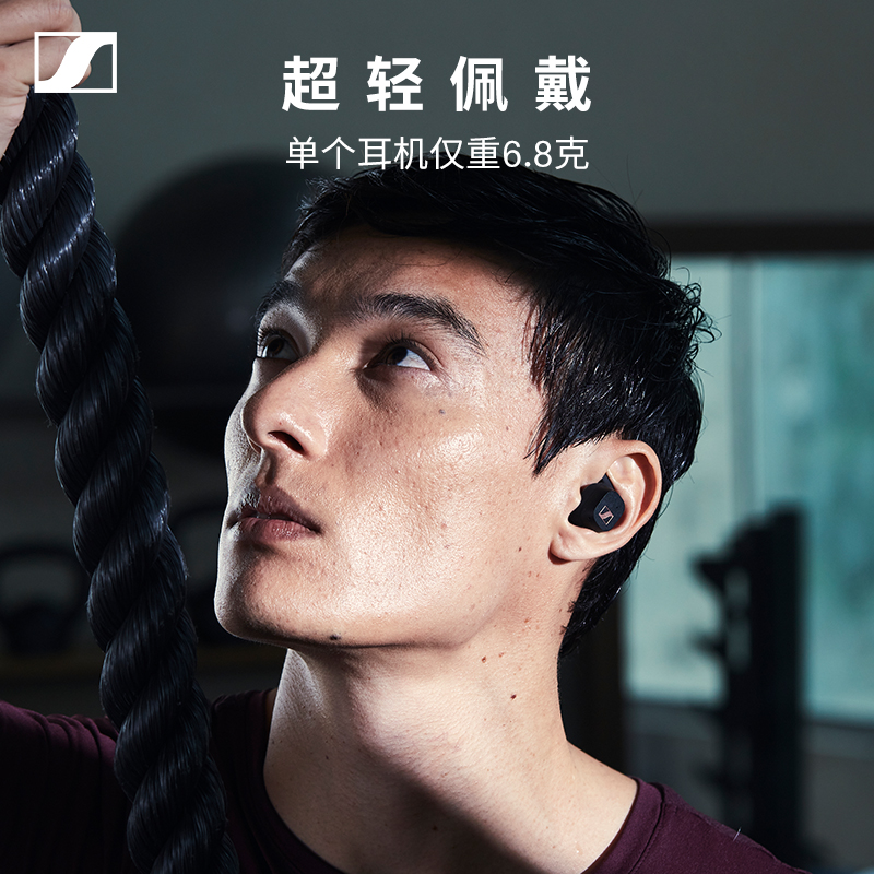 整体设计比较刚中带柔,宣称符合人体工学,提供三种不同尺寸耳套。顶部是平面,有个醒目的金色森海LOGO,顶部支持触控,符合IP54防尘防水等级,可以应对汗水、雨中跑步,甚至在海滩上锻炼。个头不小,内采用7mm直径动圈单元,所有单元均有德国总厂提供,还有森海塞尔旗舰监听耳机IE600所拥有的TrueResponse技术,在高音量时也能提供完整的低音和卓越的清晰度而不会失真。