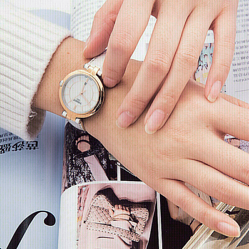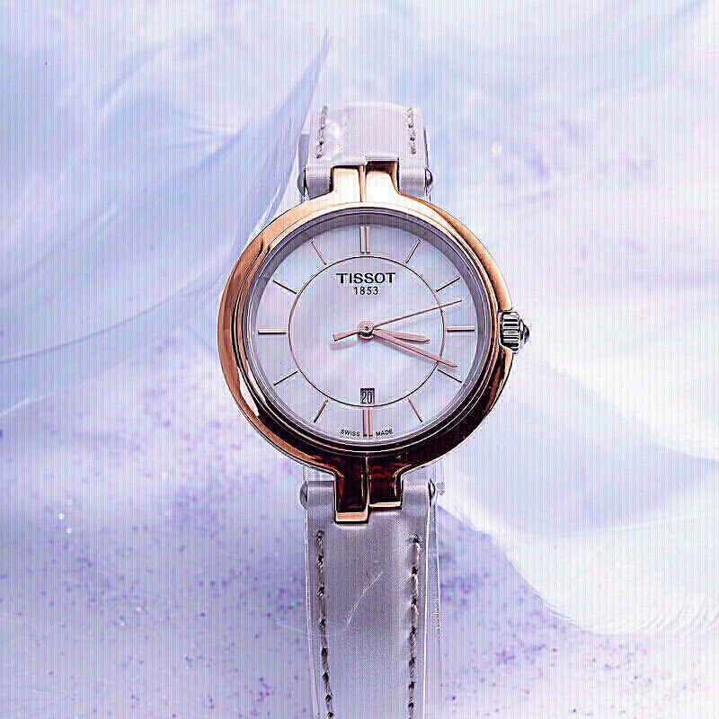 天梭弗拉明戈系列石英表,优雅白色珍珠贝母表盘,搭配金色纤细指针,腕转之间光芒璀璨,记录美好。人工合成蓝宝石玻璃表镜,硬度高、抗刮耐磨、高透光、清晰易读。不锈钢表壳,流畅线型设计,造型感十足。皮质表带,触感温润,美观耐用,贴合人体,舒适易戴。