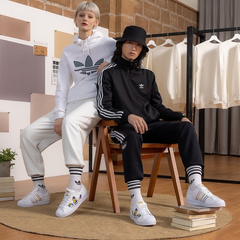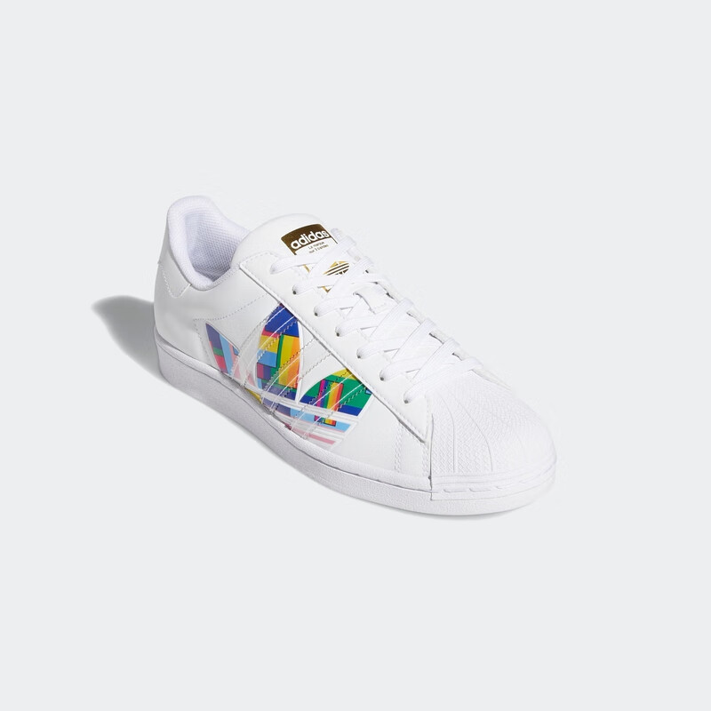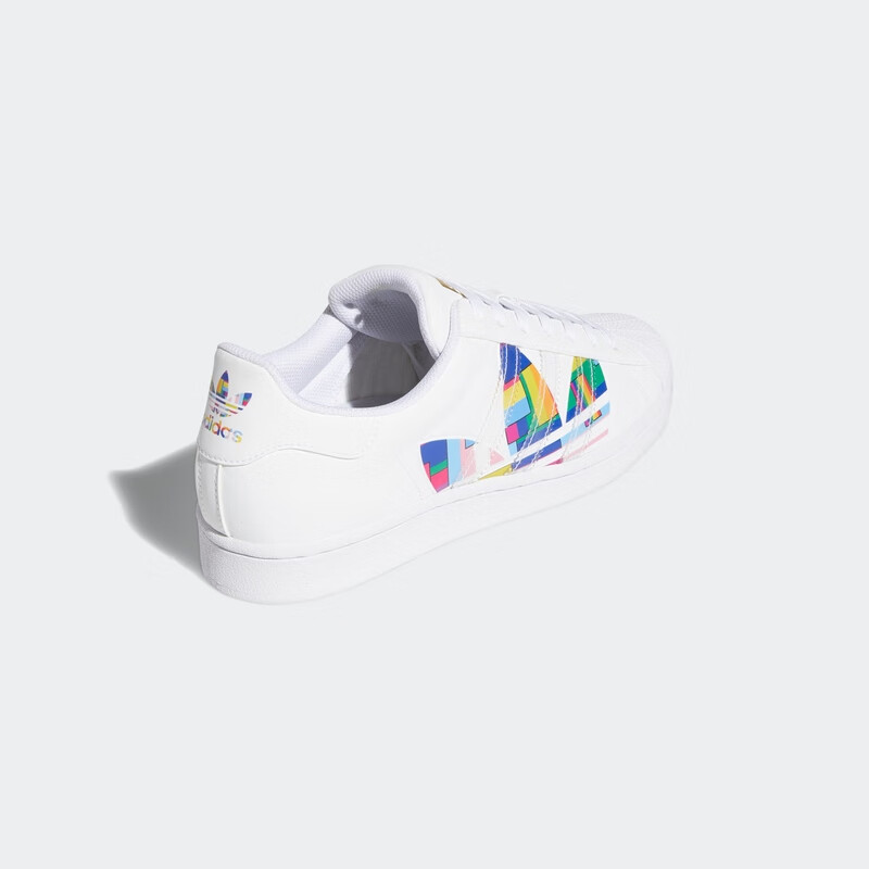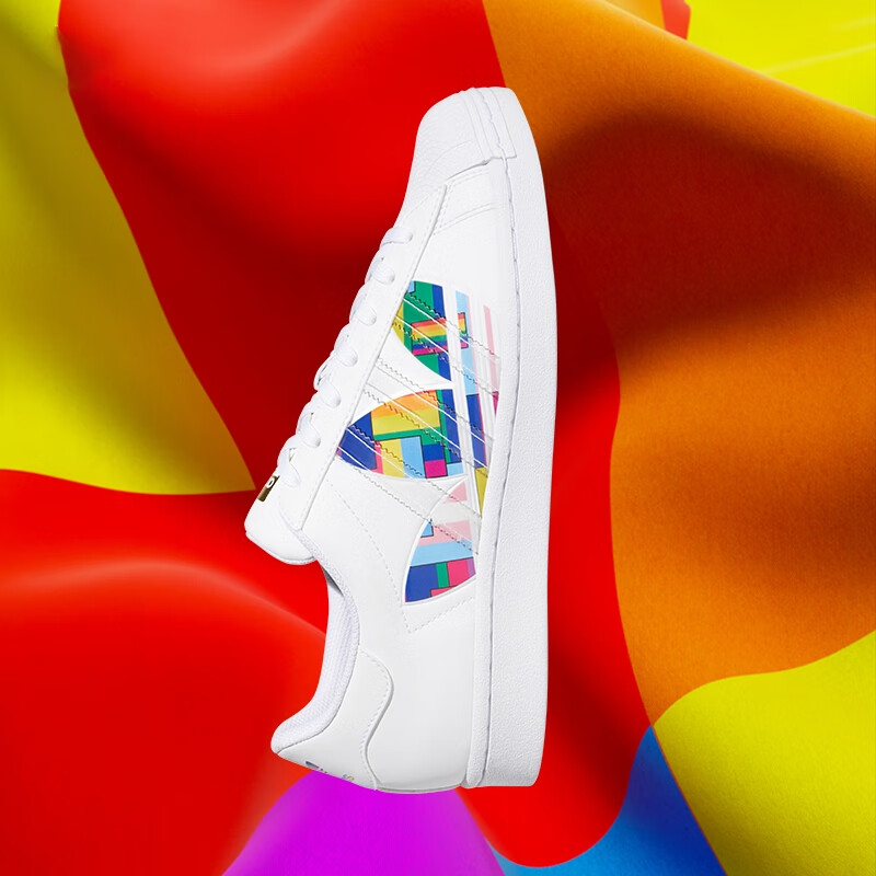 要骄傲,也要包容。这款adidas Superstar经典鞋,锯齿状三条纹点缀彩虹色,力求凸显Pride精神。另一面饰三叶草印花,内含LGBTQ+拼贴画,致敬Pride的团结精神。采用皮革面料,配招牌贝壳头。含橡胶全包大底,伴你走上街头,展示你的骄傲。