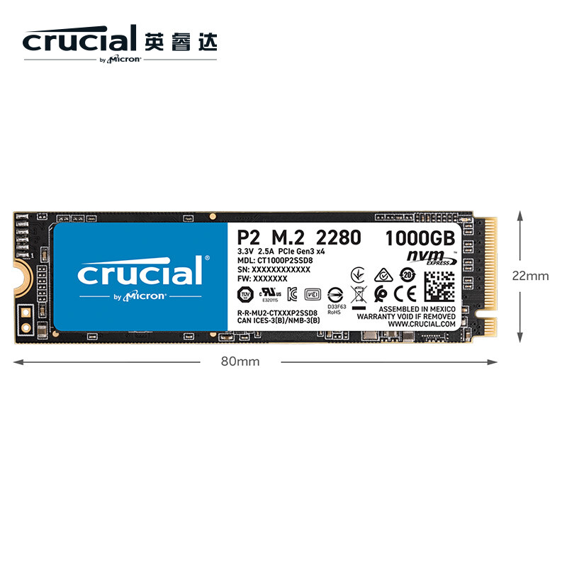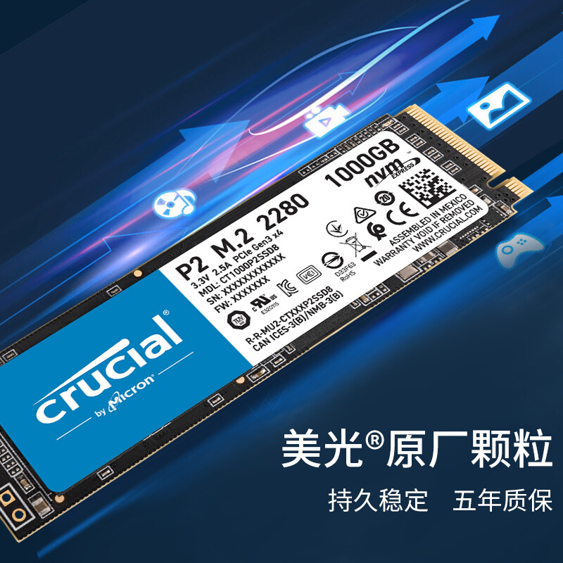 英睿达 P2系列固态硬盘NVMe协议的M.2接口,读取速度高达2400MB/s,写入速度1800MB/s,帮助电脑持久畅玩,充分发挥潜能,是升级电脑设备的高性价选择,无论是玩游戏还是面对工作,都能感受到快速顺畅的使用体验。