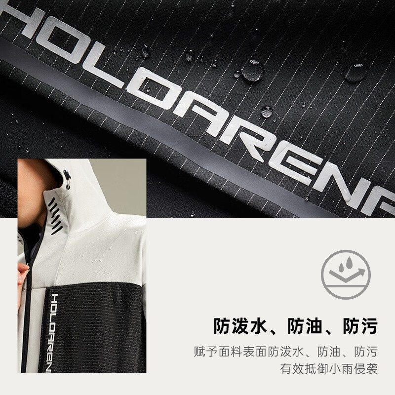 采用特殊整理技术,赋予面料表面防泼水、防油、防污,有效抵御小雨侵袭。采用高质感字母烫印标签,表达品牌态度,密齿拉链口袋设计。可调节帽口设计,有效防风。采用魔术贴可调节袖口,控温防风,有效应对恶劣天气。内层贴合磨毛贴绒面料,挺阔保暖,防风防寒。