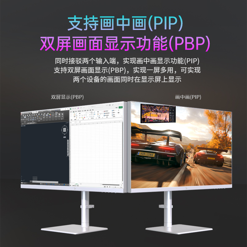 显示器采用MiniLED背光技术,分区控光,画面更逼真色彩更细腻。拥有2K分辨率,165Hz高刷新率,以及Type-C 65W反向充电。实现10,000,000:1的高对比度。显示器支持100%sRGB,95%DC1-p3,95%Adobe RGB,△E<2色域。显示器同时支持A卡与N卡,Adaptive-Sync技术同步显卡与 显示器画面传输,降低延迟,拒绝画面卡顿和撕裂, 享受更流畅的游戏体验。显示器背面拥有RGB呼吸氛围灯,搭配更多可能。提供HDM、DP、Type-C、耳机孔、USB in和USB等多接口。