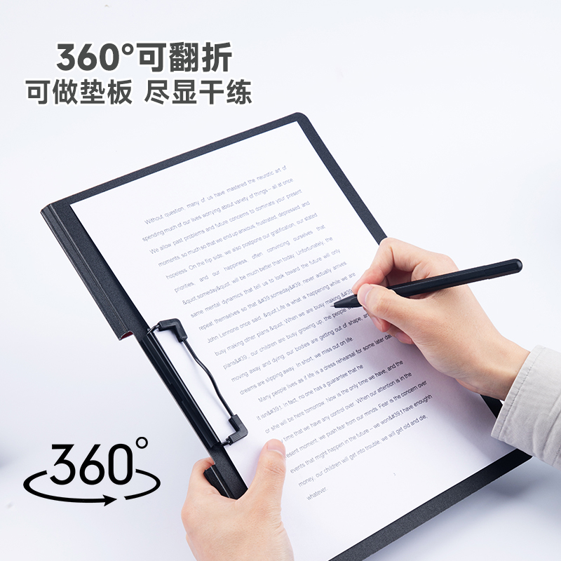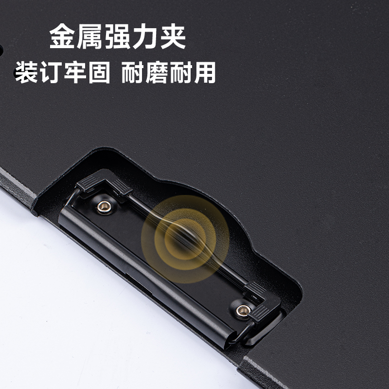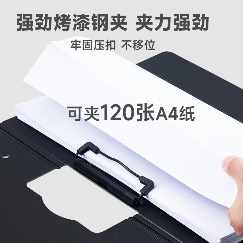 fizz飞兹多功能横式文件夹板,尺寸为238X315mm,板面采用三层发泡加厚材质,厚实耐用,不易变形弯折,安心使用,创意面板孔洞设计,方便插笔使用,即插即用实用便捷,采用五金夹具不易生锈,能够牢固文件资料,使其不易脱落,较好的保护文件,资料册边角为圆角设计,使用放心,磨砂质感,塑料包角夹纸不留痕,防水防污安心防护重要文件。